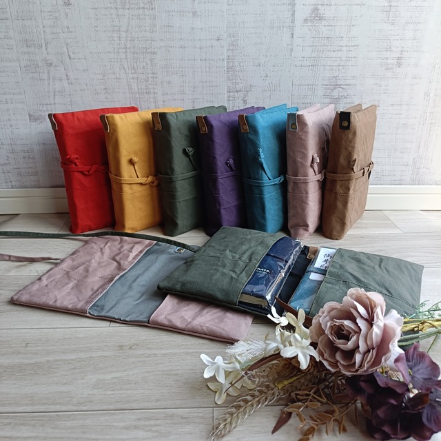 こちらはオーダーにて制作させて頂きます。 一般販売、マルシェ、その他オーダーの順番に制作させて頂きますので一ヶ月程度お待たせする事もございます。お問い合わせ頂けましたら おおよその納品をお伝え致します。 防水撥水のパラフィン帆布製、 チョーク(しわ)が可愛いデザインがたまらなく可愛いアイロンをかけることでシワ感が戻ります。ヴィンテージ感カジュアル感が楽しめます。 通帳の御朱印帳は勿論 大判、Lサイズ御朱印帳に合わせて大きさで 型紙作ってます。 アウトドアが好きな方 お洒落なデザインが周りの注目を集めること間違いなし。 自分の御朱印帳を大切に持ち歩きたい方にオススメのアイテムです。 また、漫画本 小説を2冊入収納 バックに入れて大切な本を持ち歩けます。 【サイズ】 本体20.5×32 ポケット20.5×12 ハンドメイドの為若干の数ミリの誤差は出ますのでご了承下さい。 スマホでの撮影となります。一番近いお色で撮影しておりますがお客様の個々の端末によって 色の見え方が若干違いますのでご理解宜しくお願い致します。 パラフィン パラフィン帆布 御朱印帳 御朱印帳ケース お洒落な御朱印帳ケース 御朱印帳袋 お洒落な御朱印帳袋 御朱印 御朱印集め 御朱印巡り 御城印 BOOKカバー 通帳ケース 通帳入れ