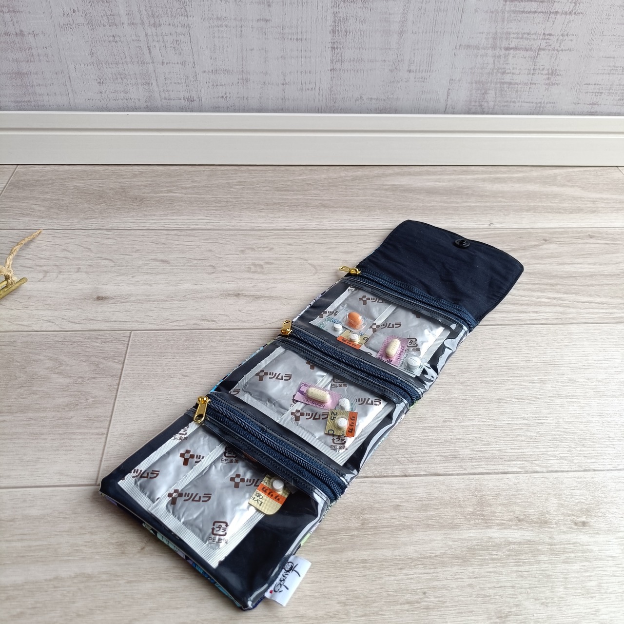 お出かけ旅行の際に朝、昼、夜に分けられるお薬ポーチとして