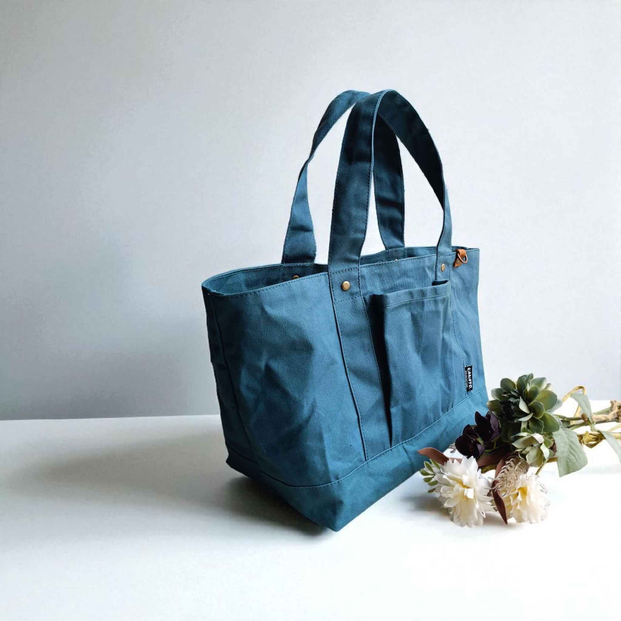 【シンプルトートバッグ】パラフィン帆布 ミニトートバッグ トートバッグ パラフィン帆布トートバッグ 紙袋のようなバック ビリジアン