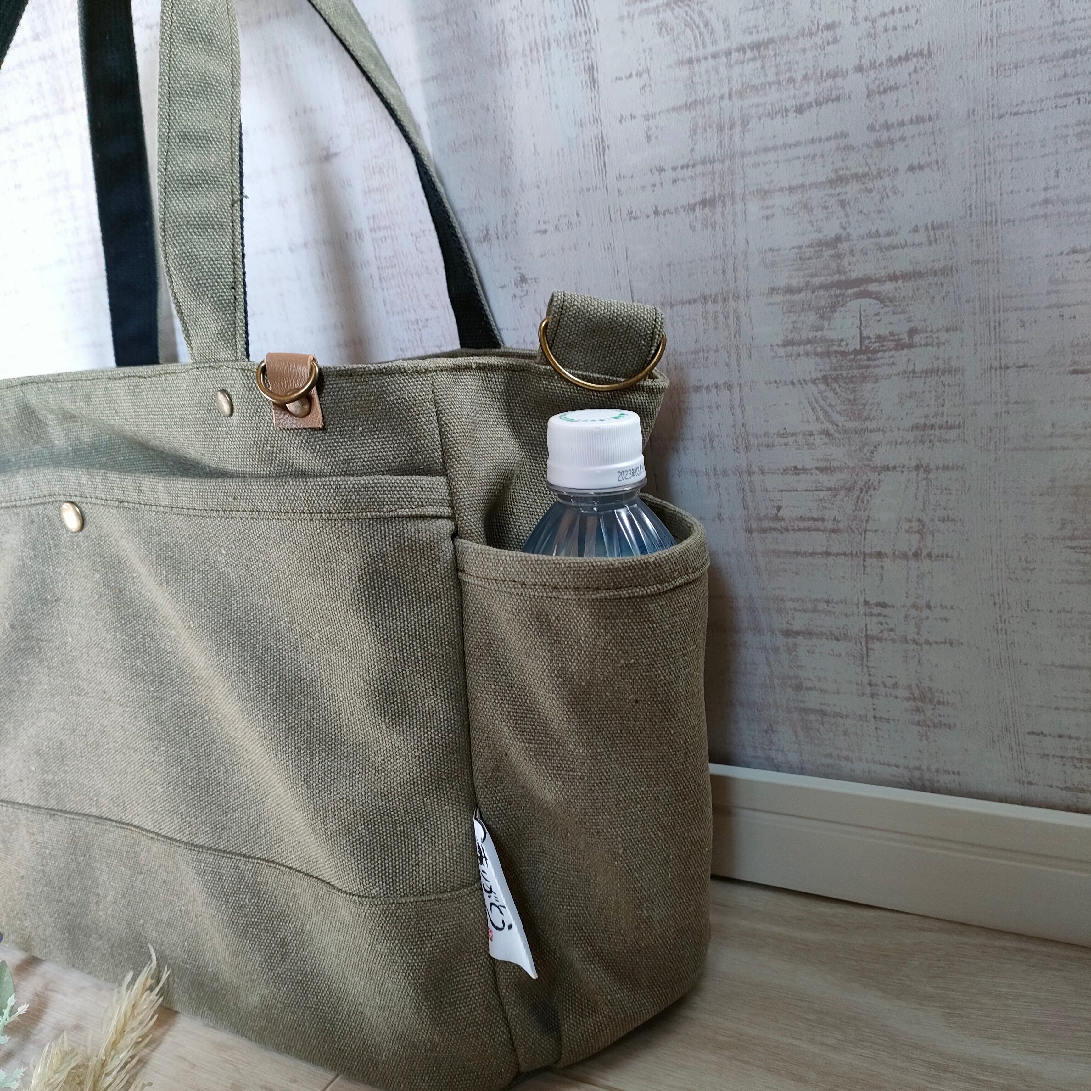 ヴィンテージ加工帆布トートバック 帆布トートバック トートバック大 ショルダーバック 2wayバック カーキ