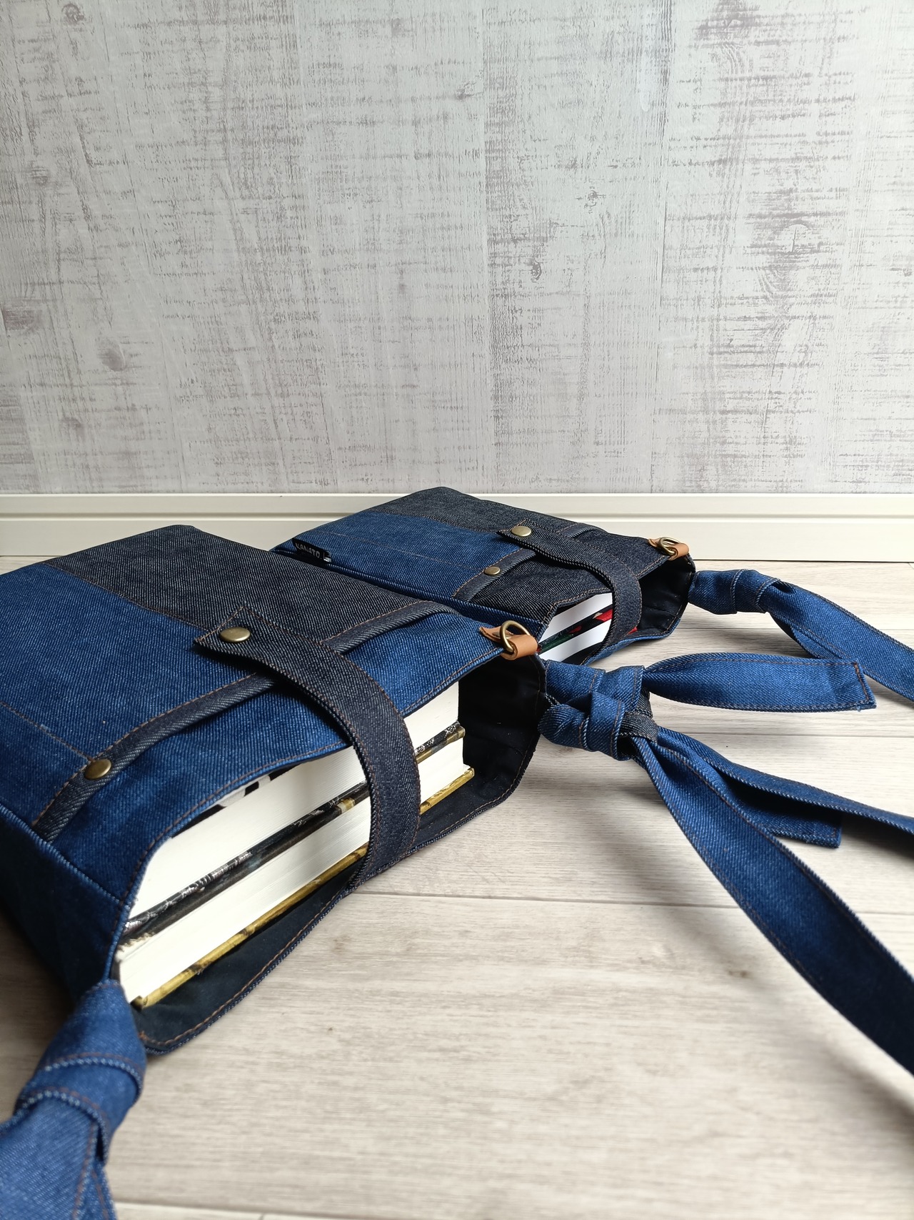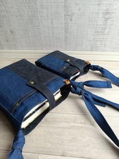 旅、お買い物の相棒になってくれる、デニム素材ののサコッシュポシェットを頭陀袋風にショルダーストラップを付けました。