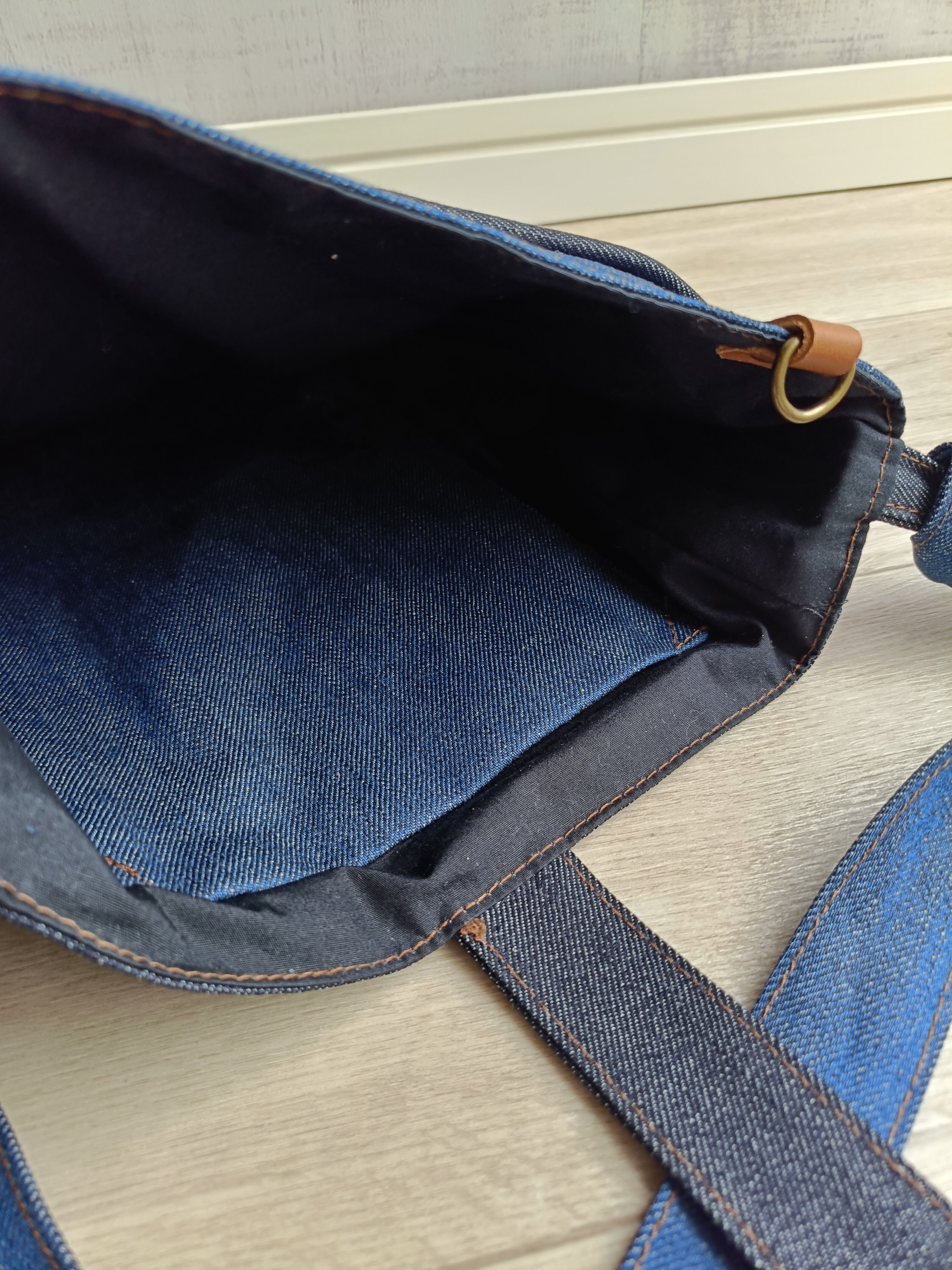 旅、お買い物の相棒になってくれる、デニム素材ののサコッシュポシェットを頭陀袋風にショルダーストラップを付けました。