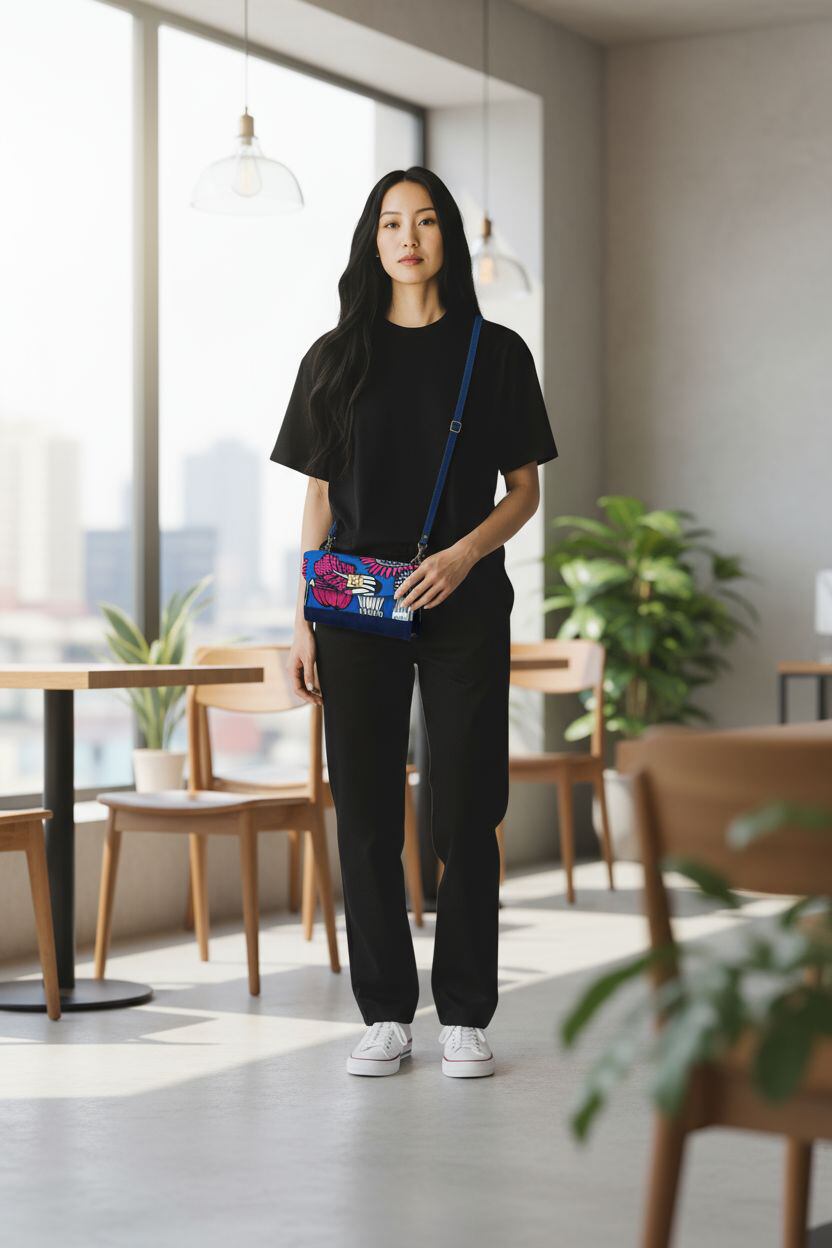 このお財布ショルダーは、お買い物や食べ歩きの際に手軽に持ち運べるので、子育て中のママからお年寄りまで お洒落なデザインで、どんなシーンにもマッチします。両手を自由に使えるのが魅力です。