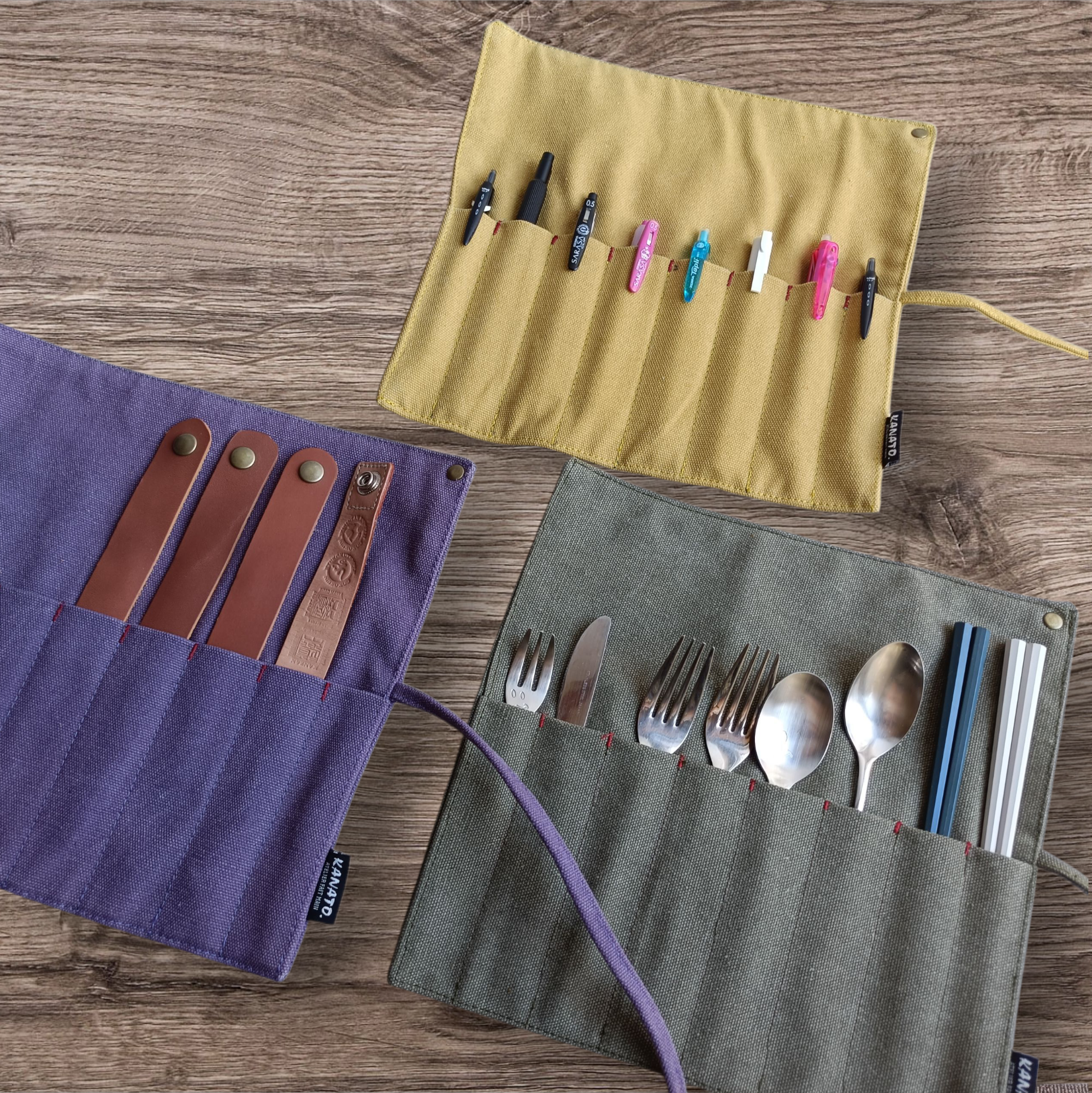 【現品販売】ヴィンテージ帆布 ペンケース スプーンフォークケース 筆入 工具袋 巻き型ペンケース 巻き型筆入れ 巻物 防災グッズ