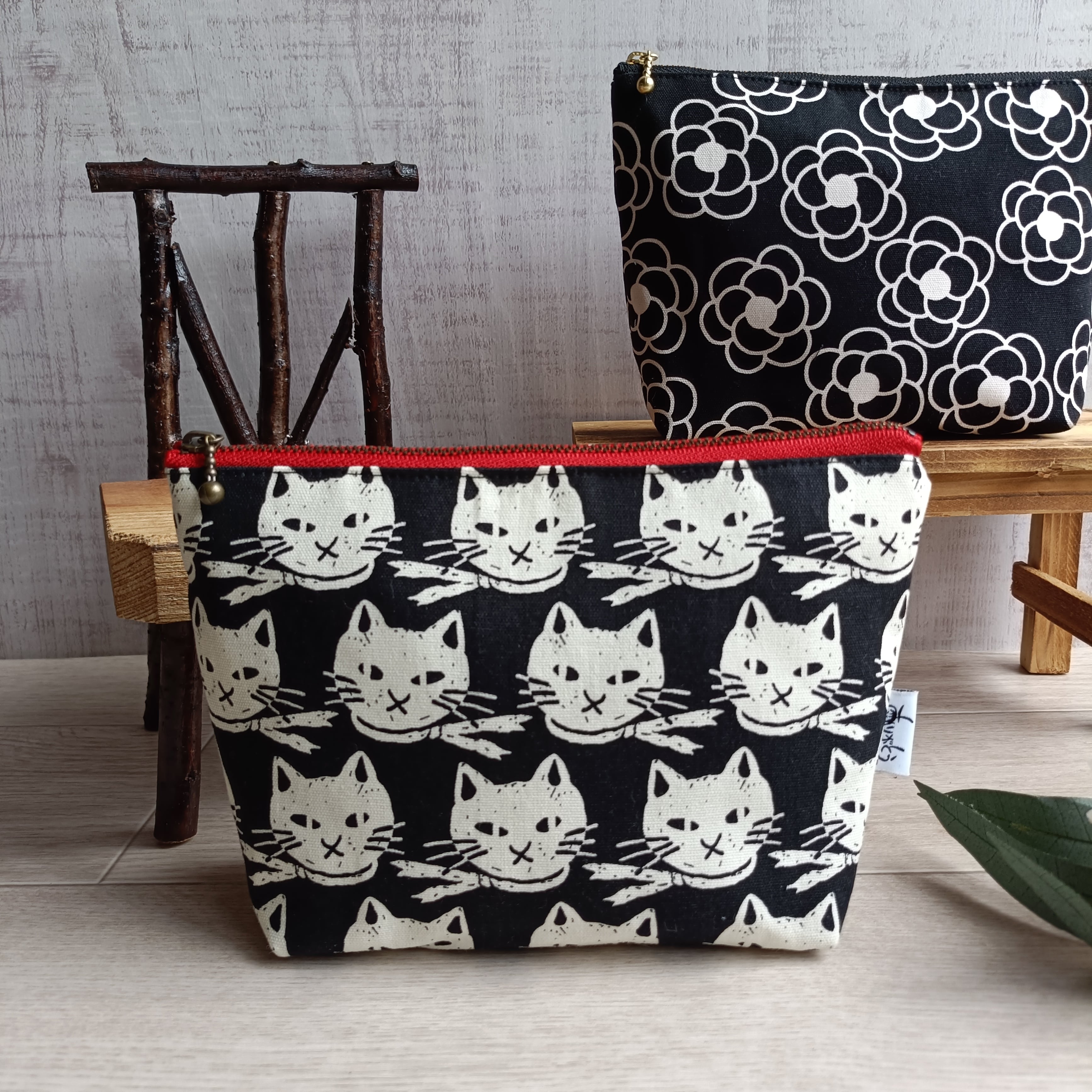 ポーチ 通帳ケース 通帳ポーチ お薬手帳ケース サニタリーポーチ 化粧ポーチ 花柄 カメリア 猫
