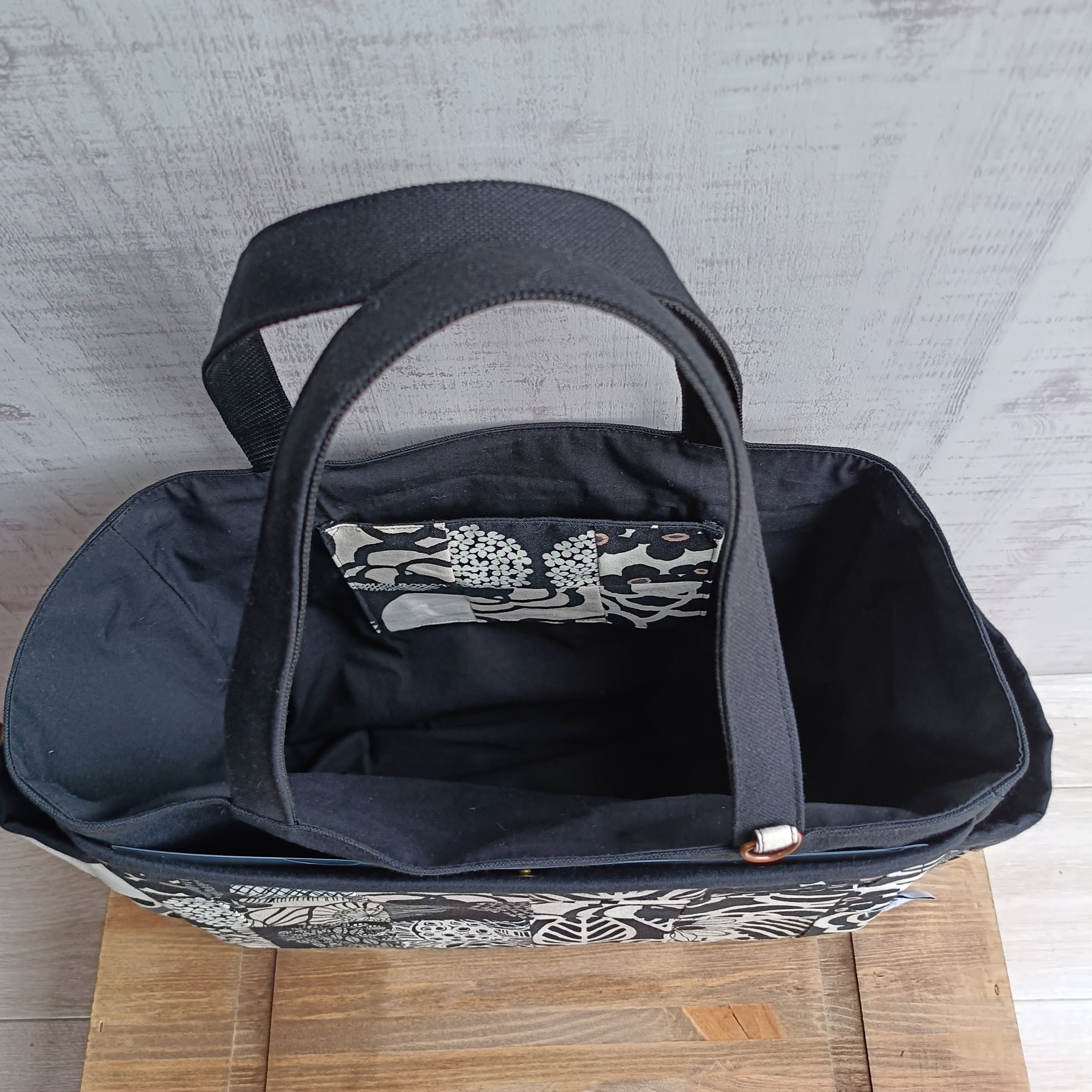 サイドポケット付きトートバッグ大 和柄トートバック 和柄バック 着物柄バック 着物バック 椿 菊