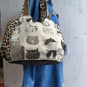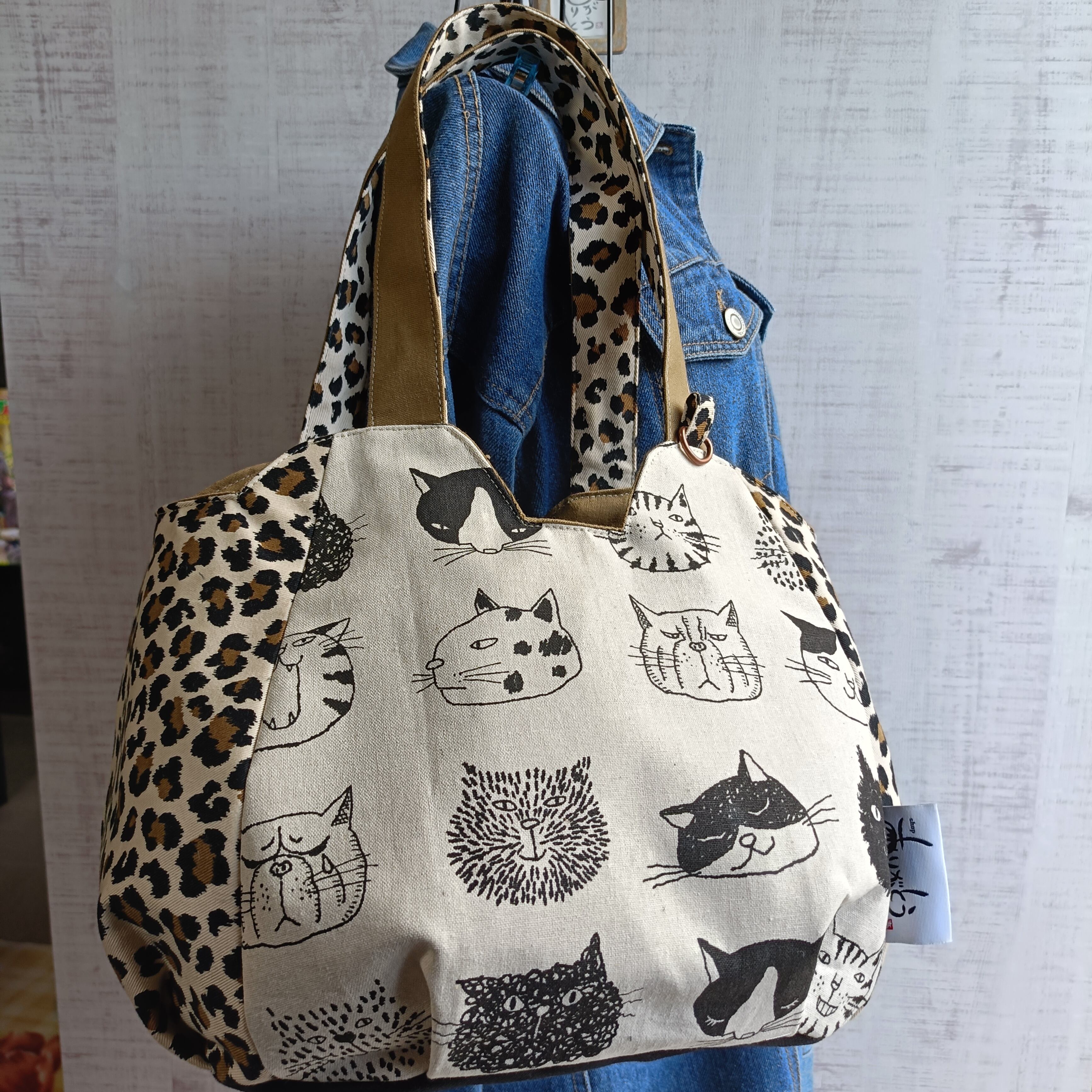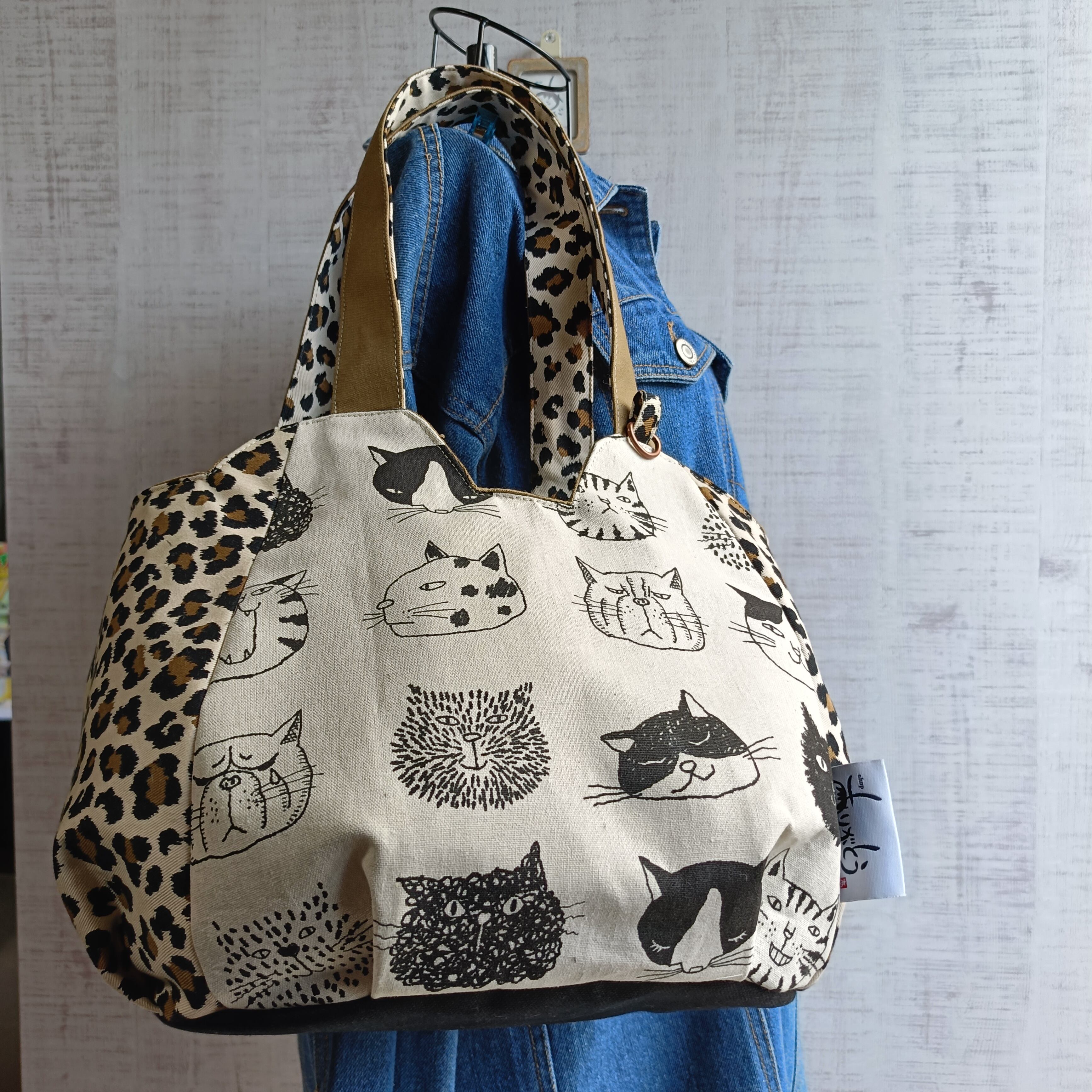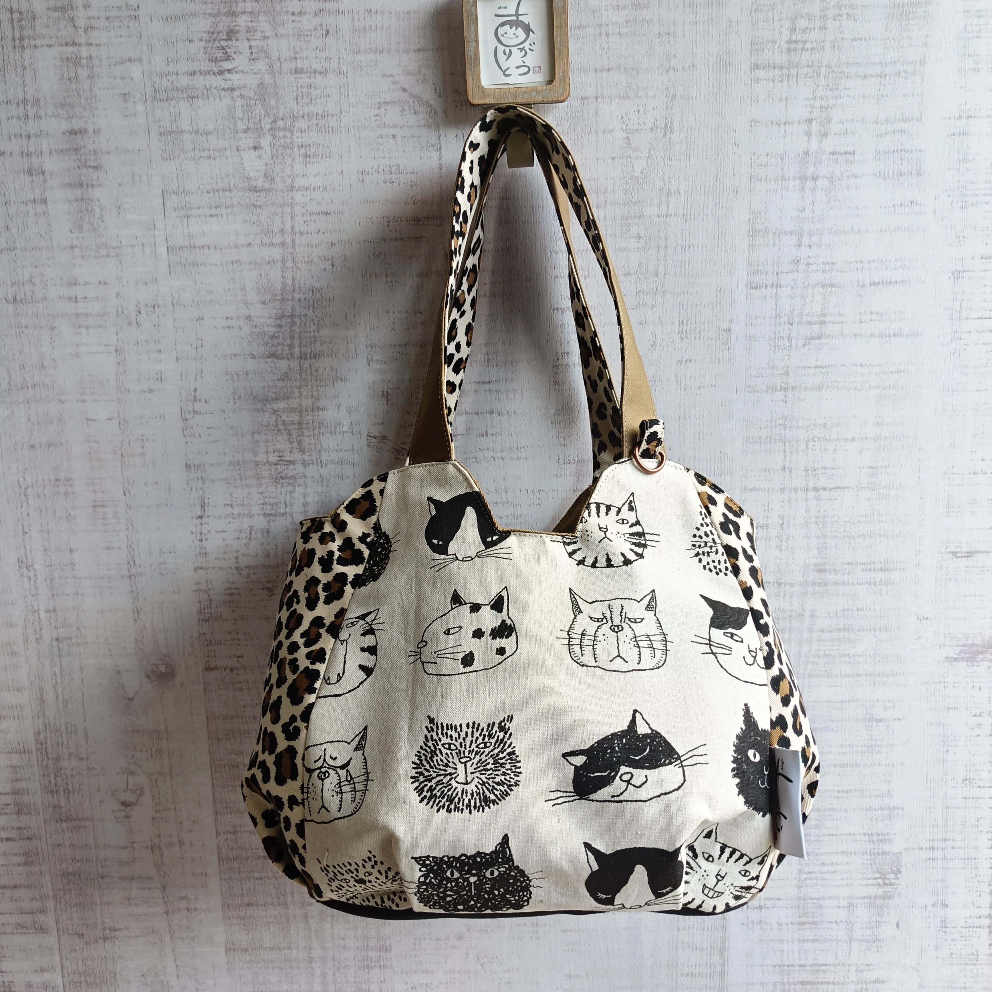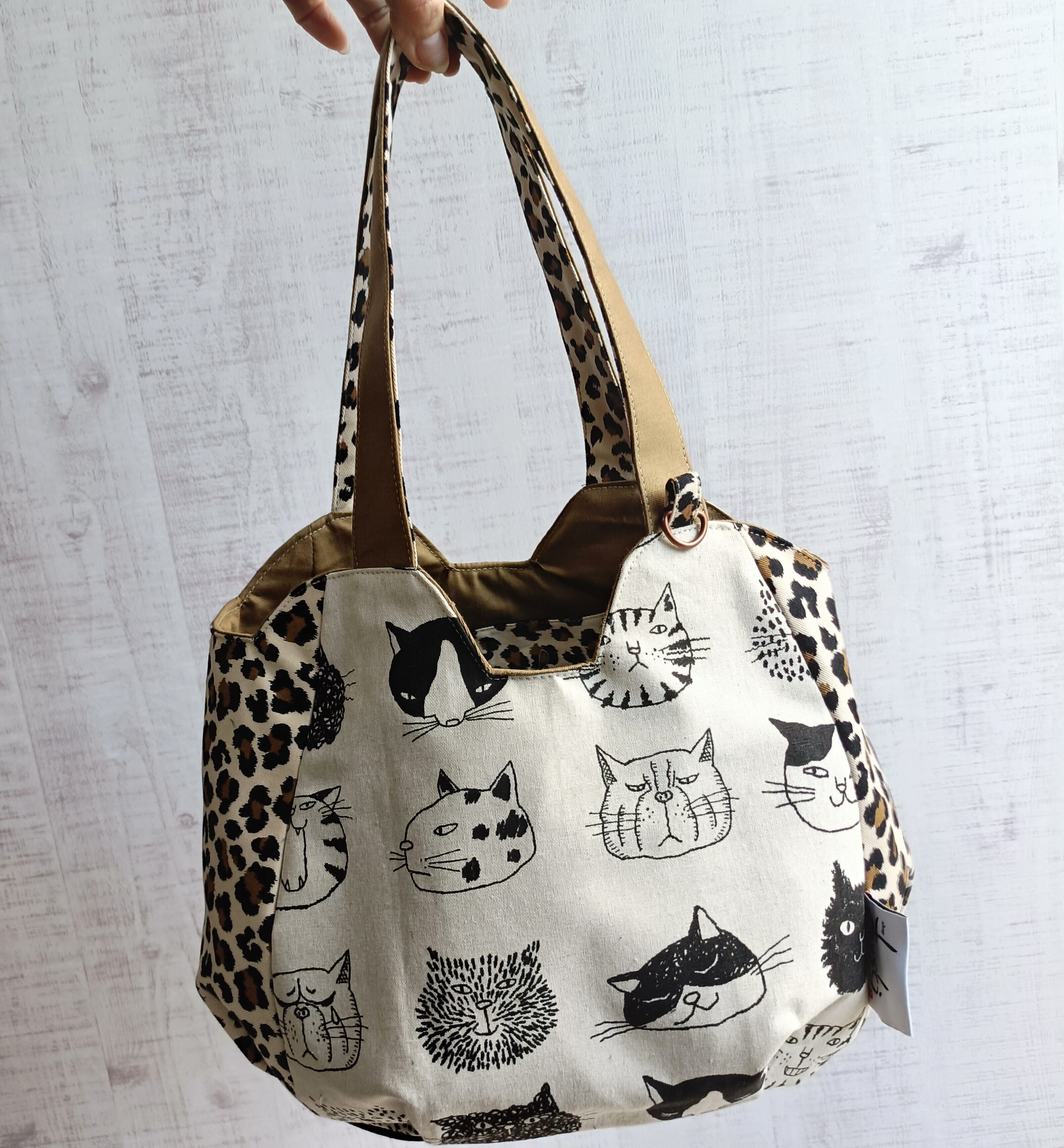 サークルバック 猫柄バッグ 猫のトートバッグ 丸いバッグ ネコ レオパード 豹柄