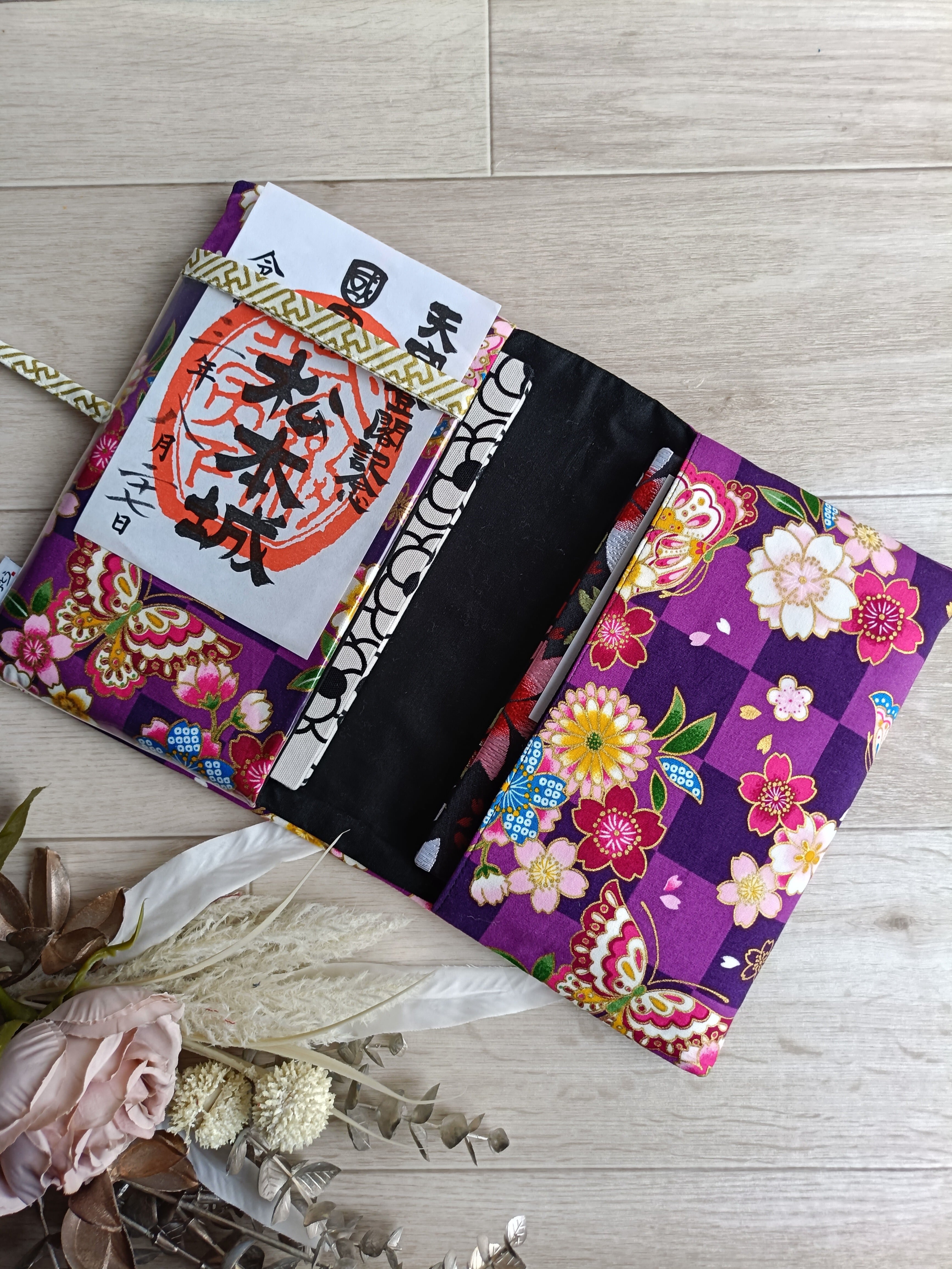 クリアポケット付き御朱印袋 御朱印帳袋 御朱印帳ケース 御首題袋 御城印袋 蝶々和柄 市松模様 和柄 ムサラキ好き 蝶々柄 市松柄
