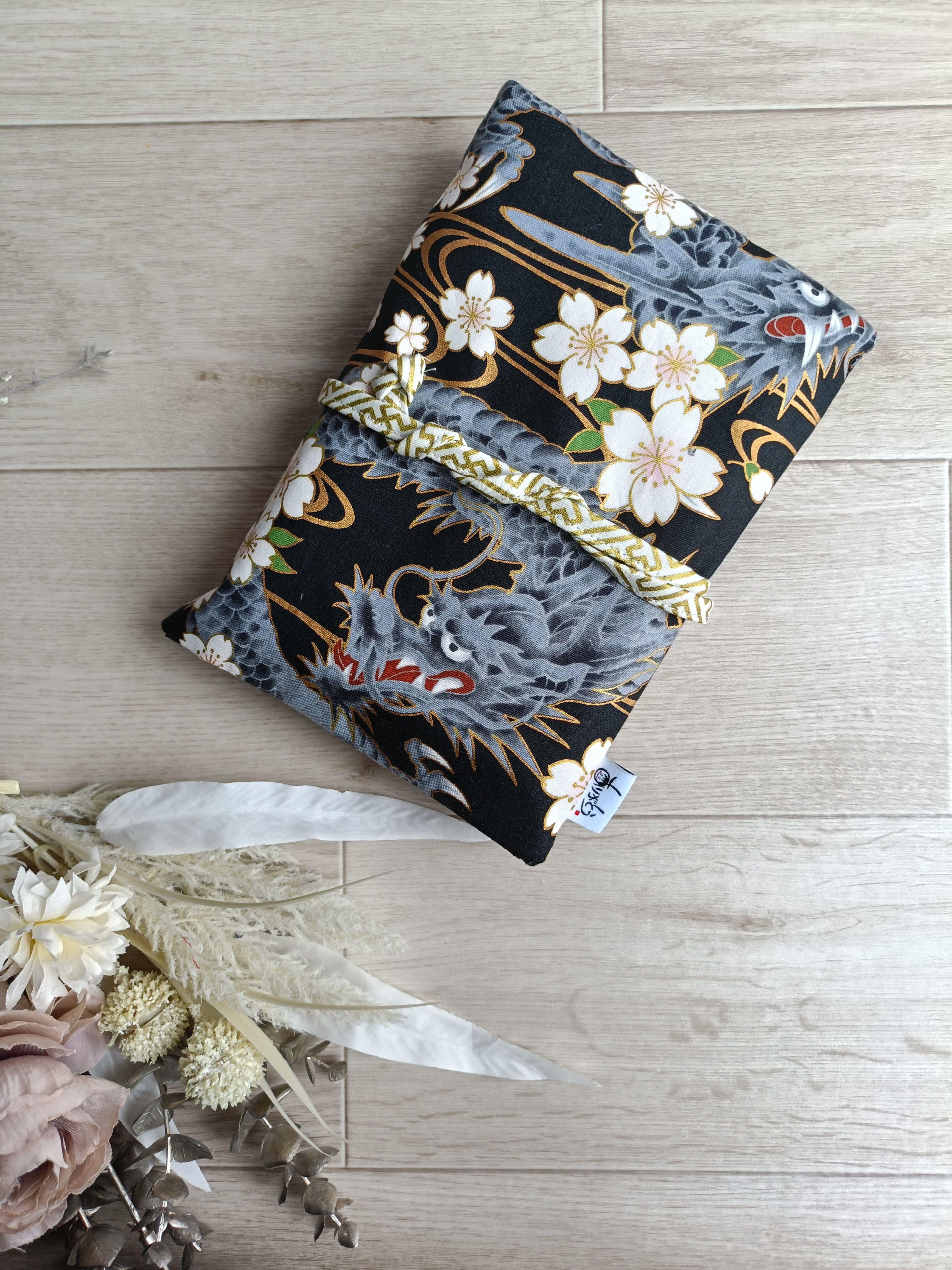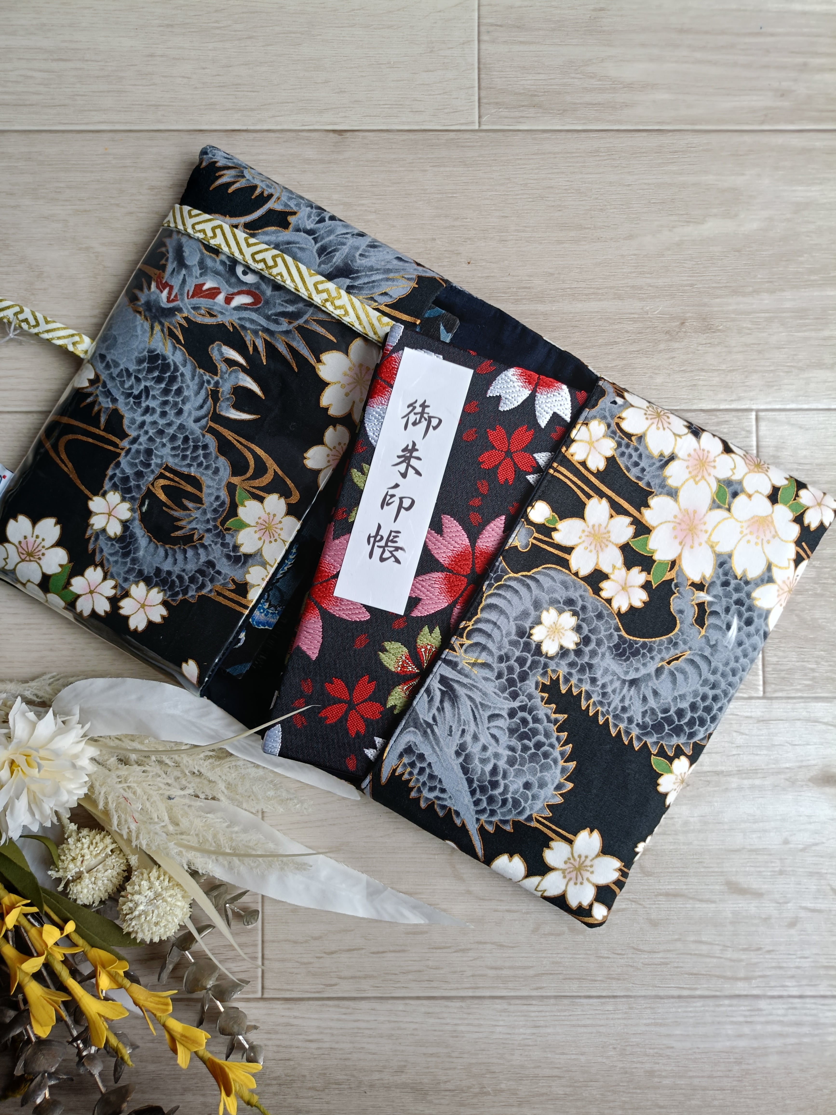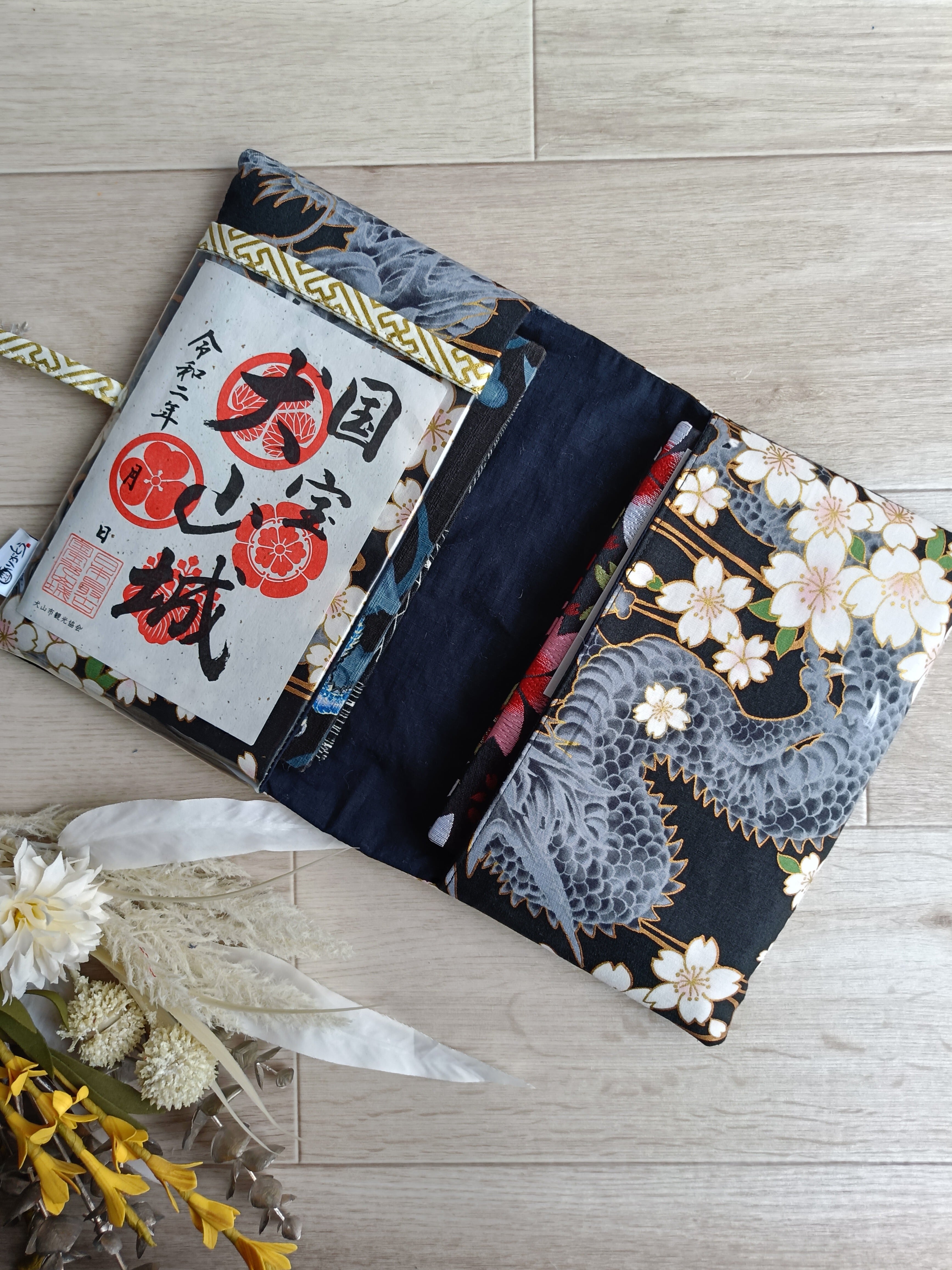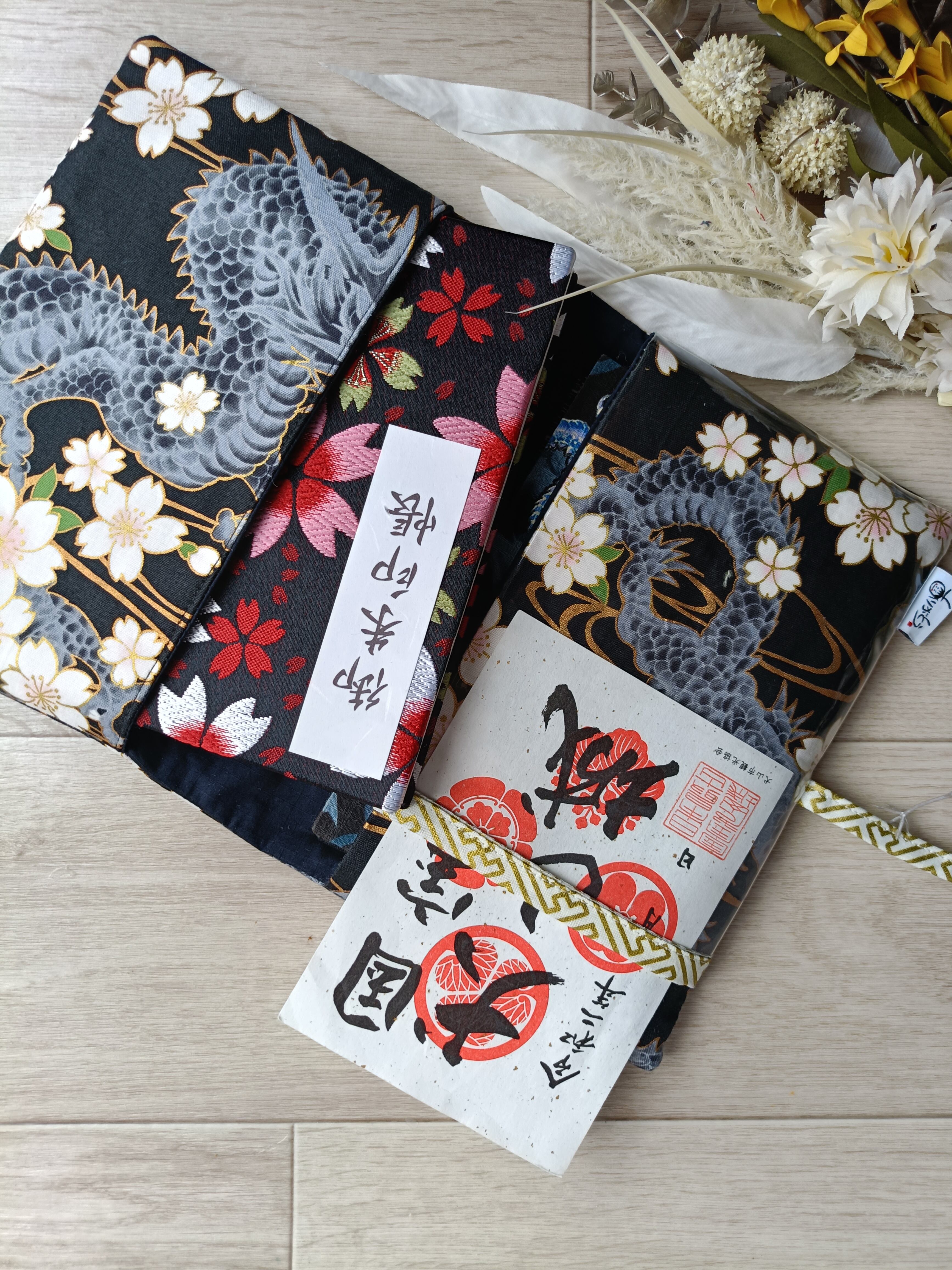 クリアポケット付き御朱印袋 御朱印帳袋 御朱印帳ケース 御首題袋 御城印袋 龍和柄 龍模様 和柄 龍好き ドラゴン柄 桜