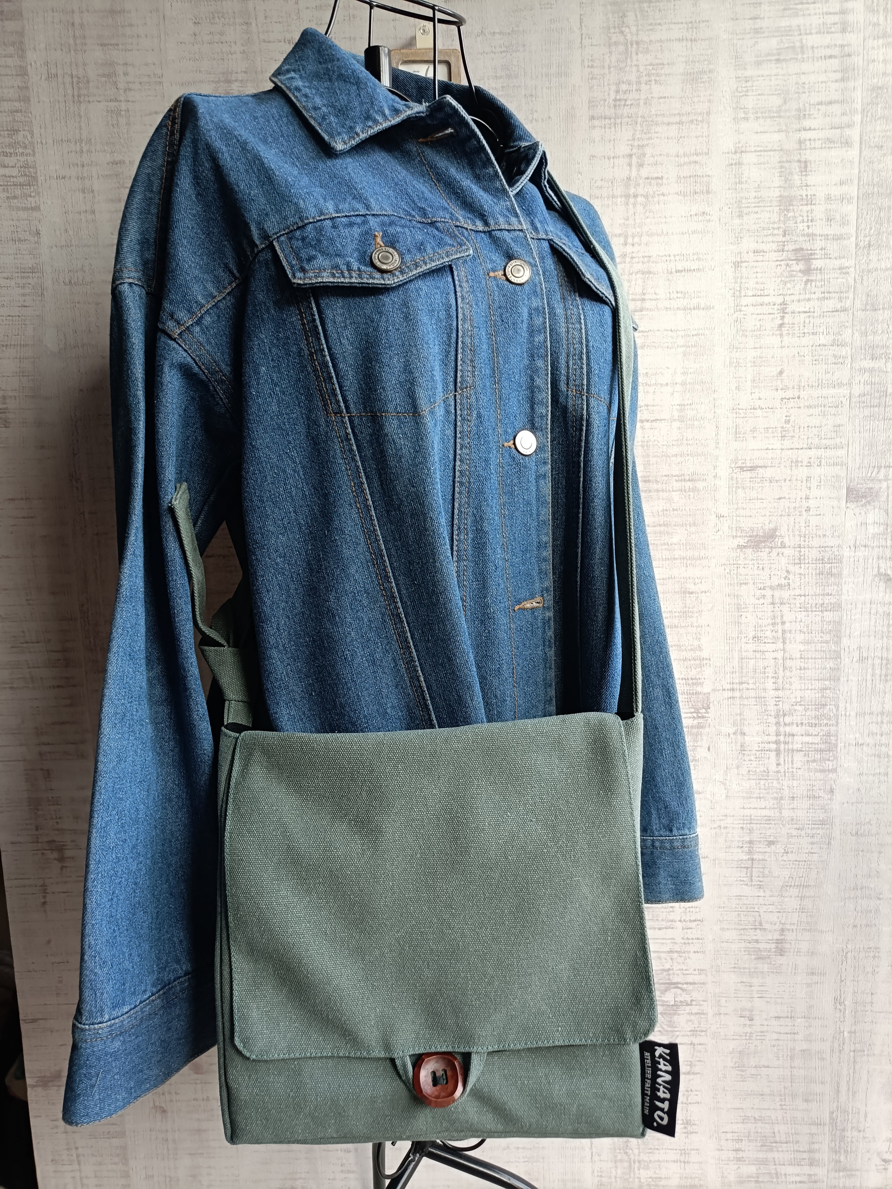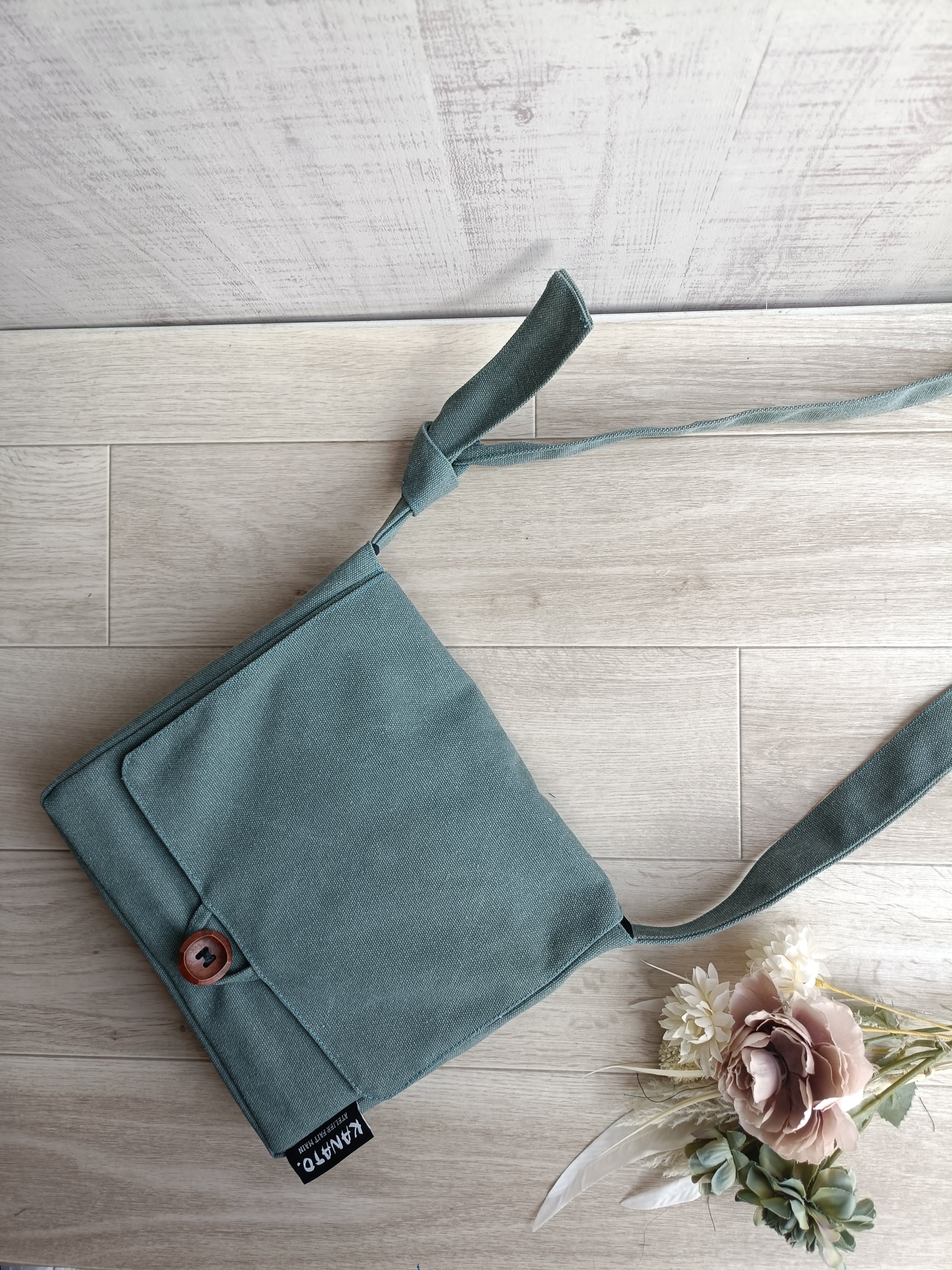 【受注生産】ヴィンテージ加工 頭陀ボタンショルダーバッグ 頭陀袋 ずだ袋 サコッシュ 帆布ショルダー ミント