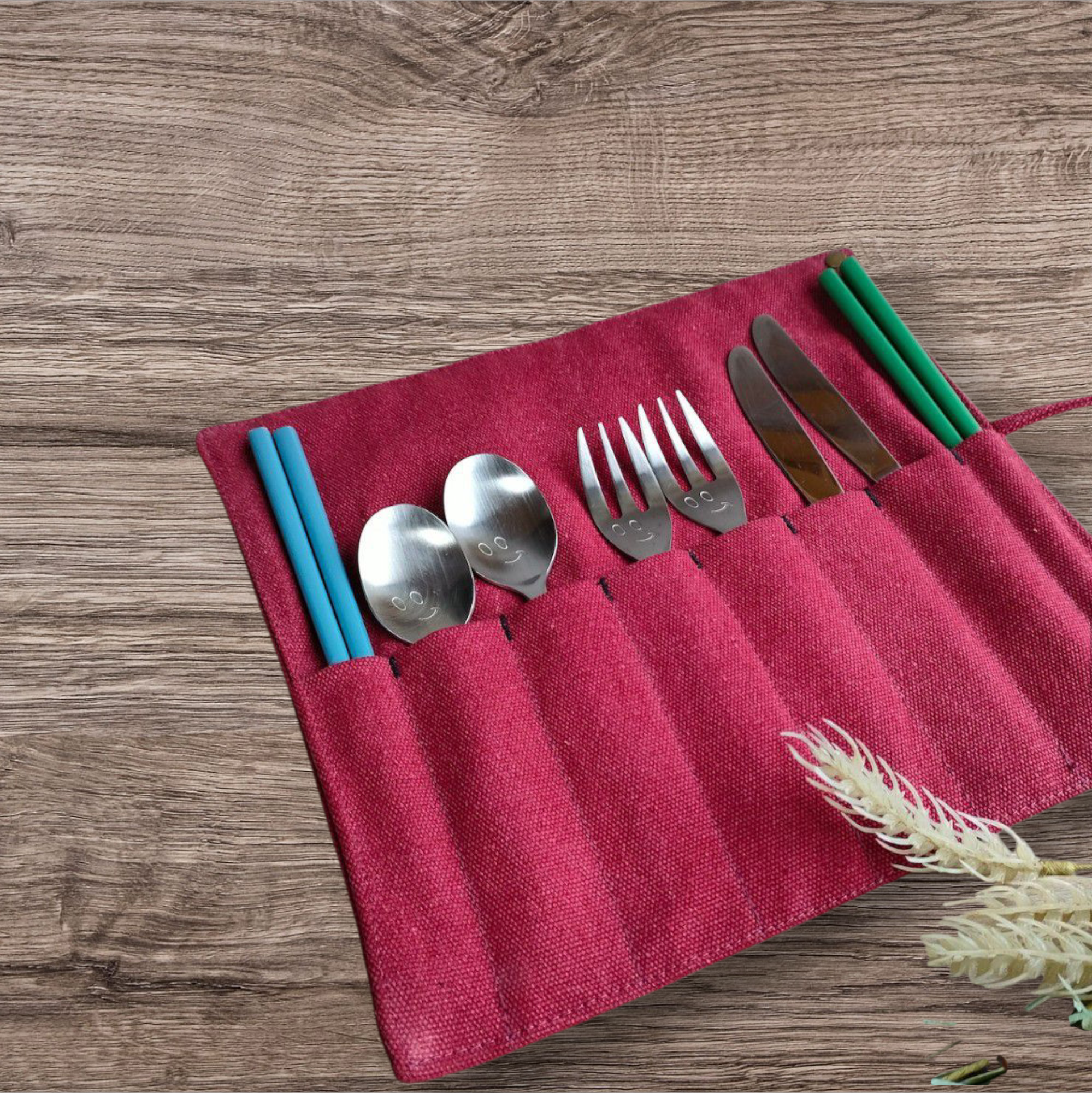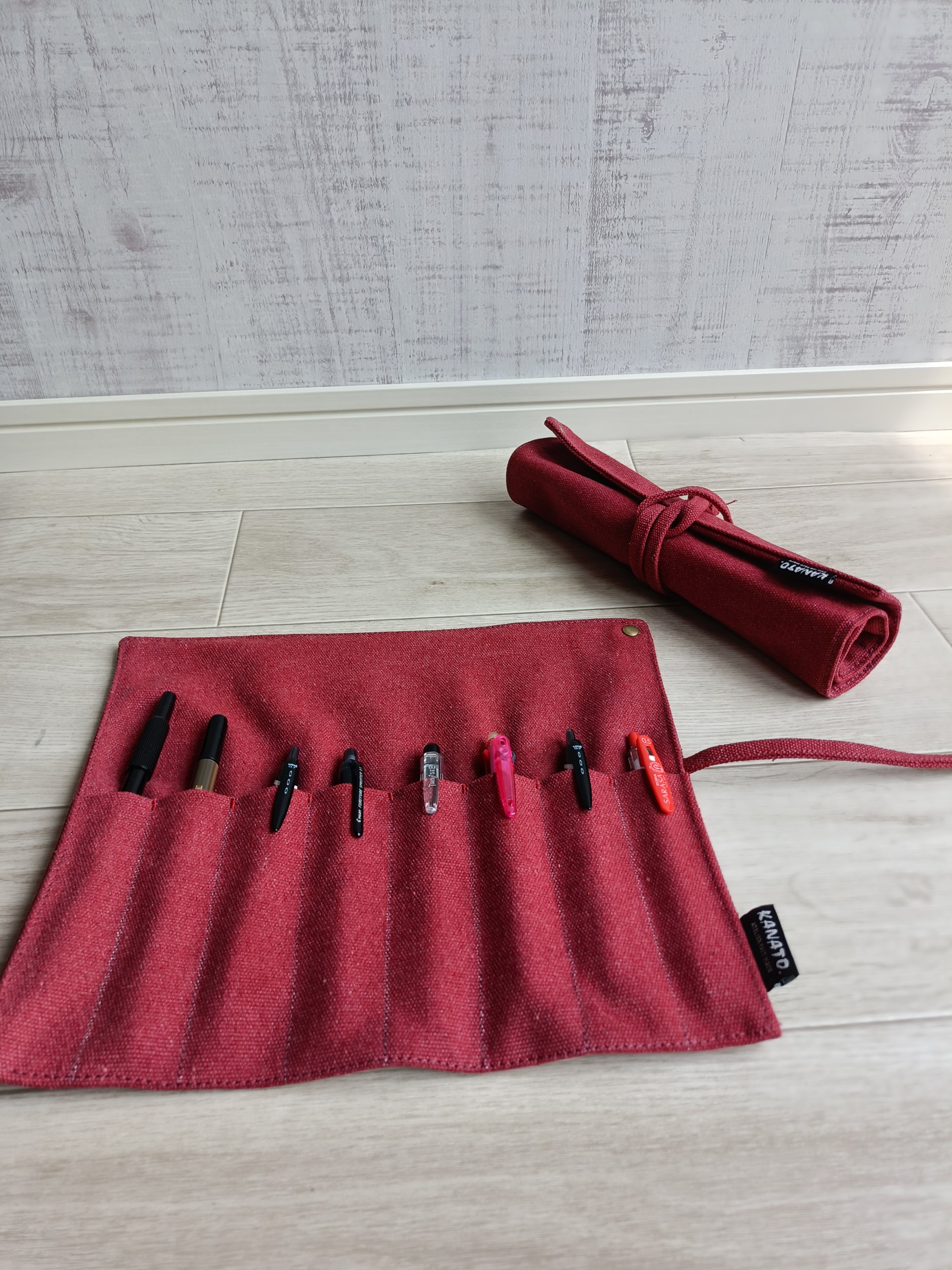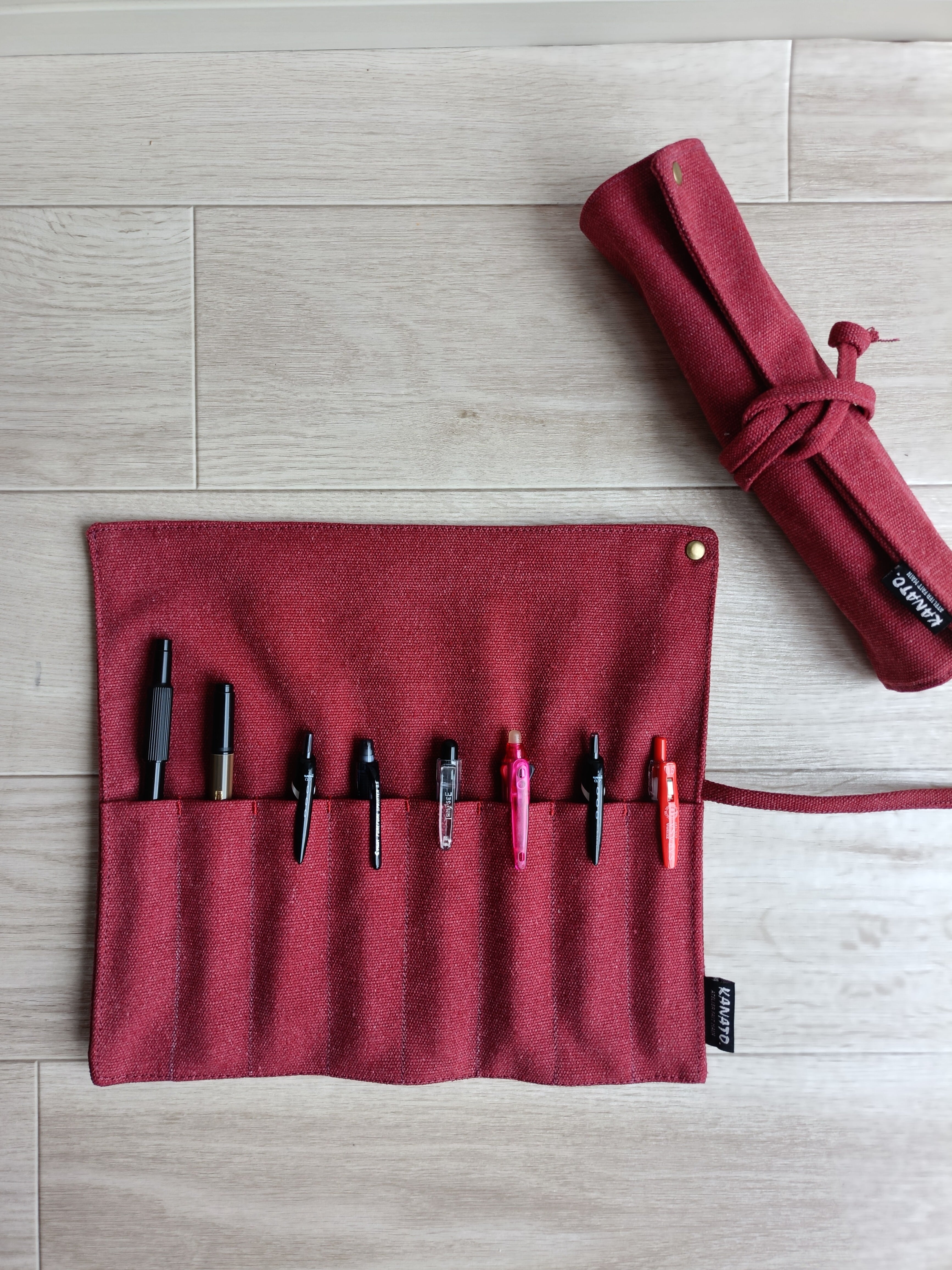 ヴィンテージ帆布 ペンケース スプーンフォークケース 筆入 工具袋 巻き型ペンケース 巻き型筆入れ 巻物 防災グッズ RED