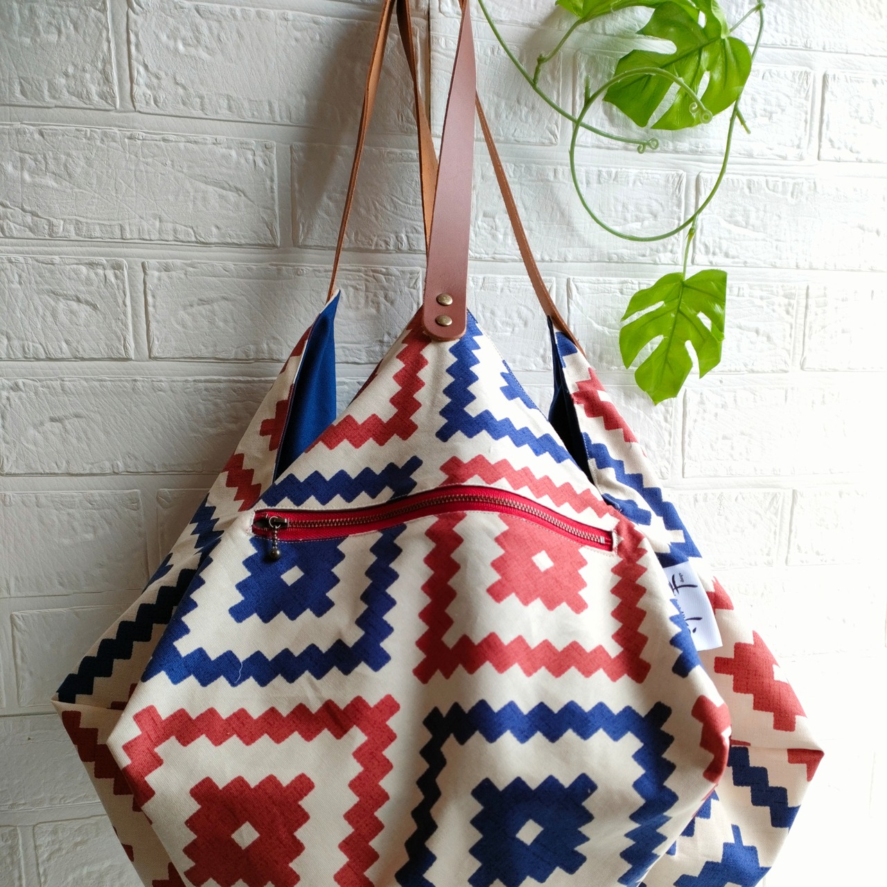 スクエアバック トートバッグ カジュアルバック 大人カジュアルバック 対象模様 エジプト模様 レザーハンドルバック 通学バック アウトドア アウトドアバック