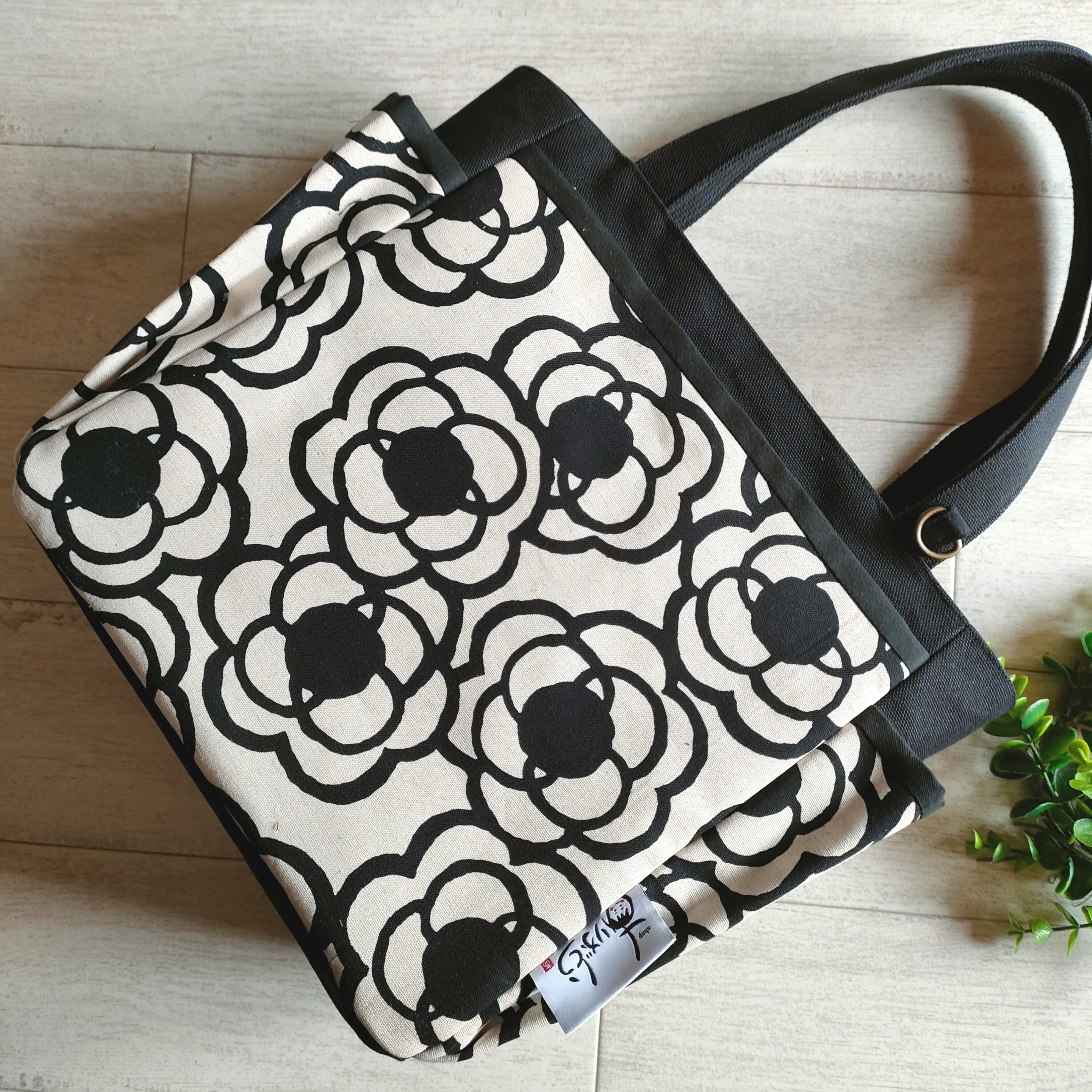 サイドポケット付きトートバッグ中 カメリア カメリア柄 カメリア柄トートバッグ