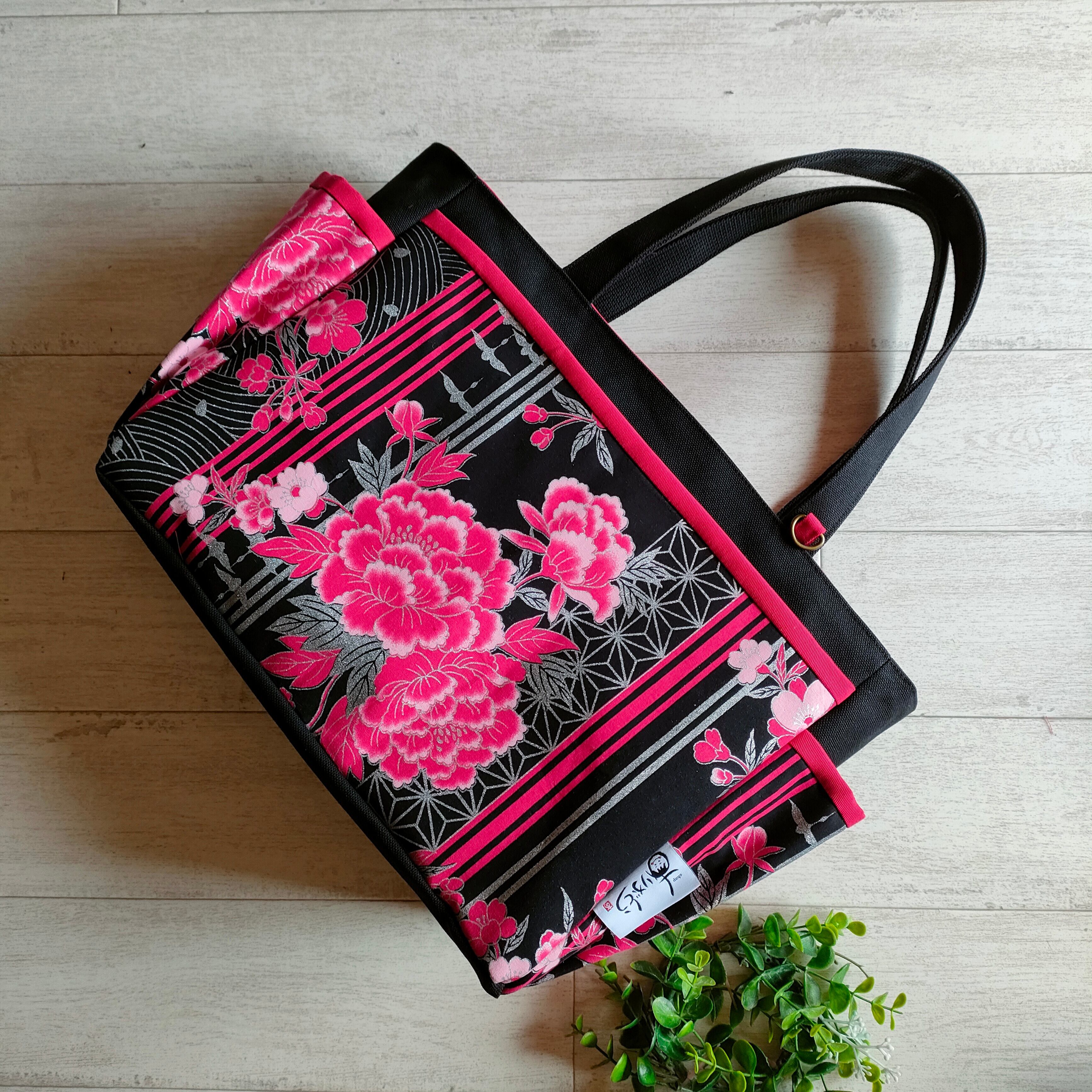 サイドポケット付きトートバッグ大 和柄 和柄バック 着物バック 和柄トートバック