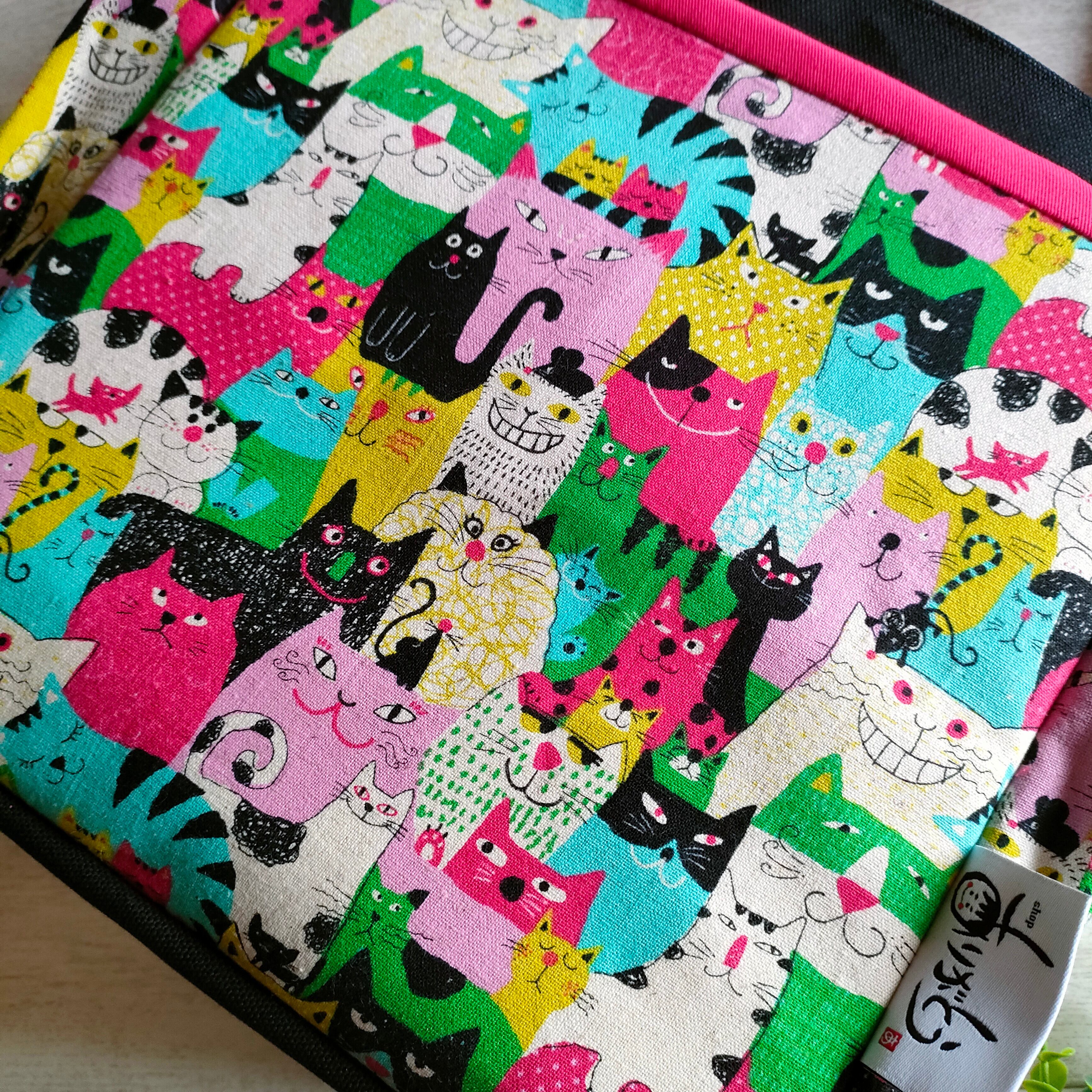 サイドポケット付きトートバッグ中 猫 猫柄 猫柄トートバッグ ネコ柄トートバック ボタニカル ボタニカルトートバック