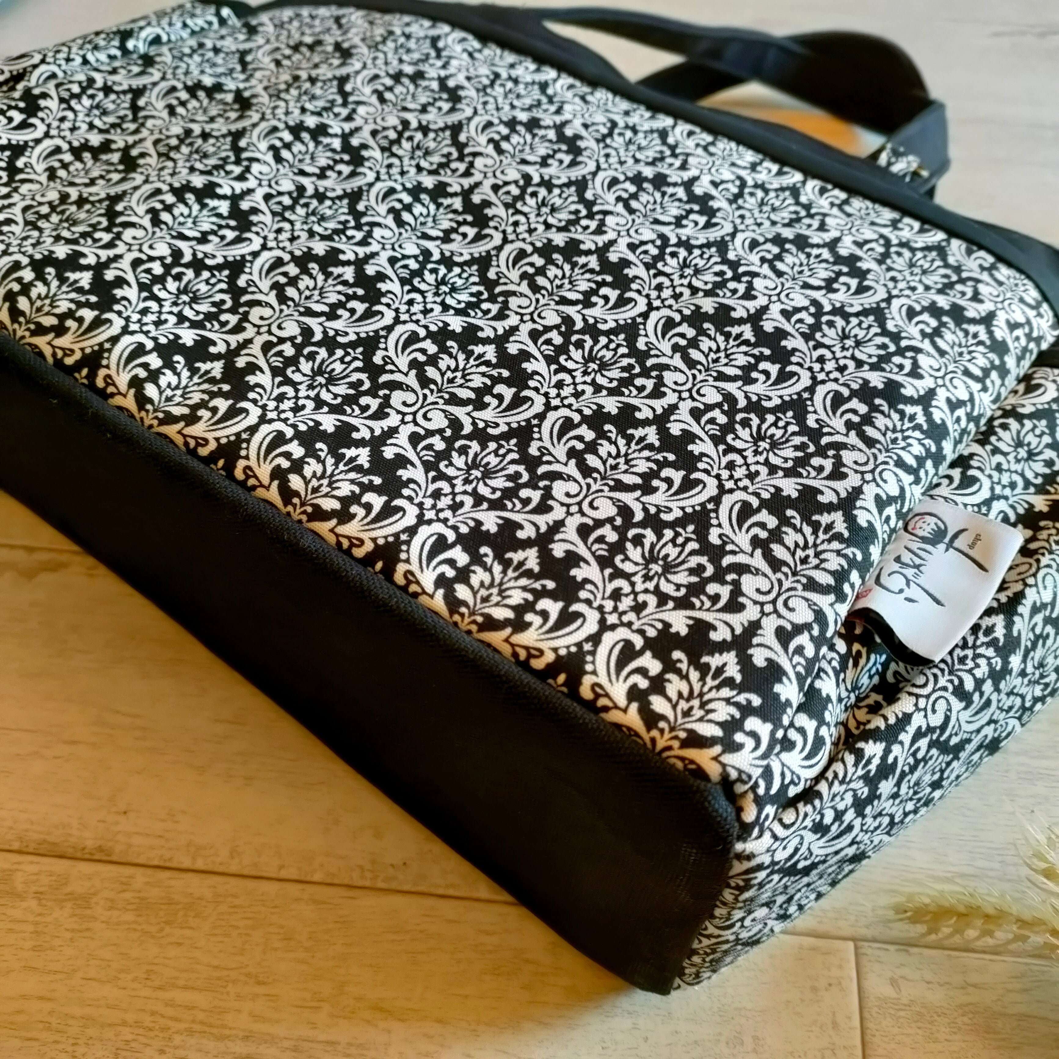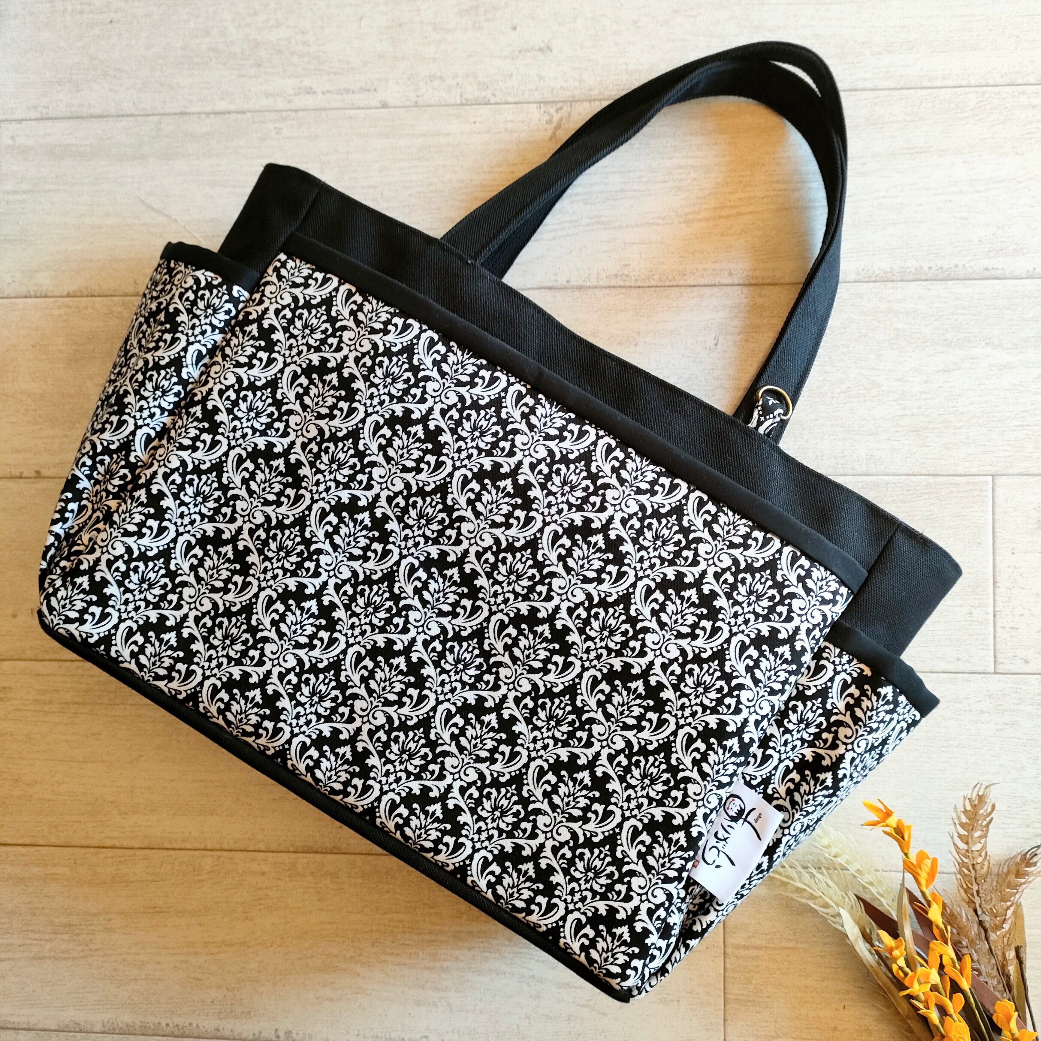 サイドポケット付きトートバッグ大 ダマスクトートバックバック ダマスクバック ダマスク柄トートバック 春のトートバック レトロ 大人バック