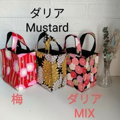 スクエアミニトートバッグ 梅&ダリアMustard&ダリアMIX