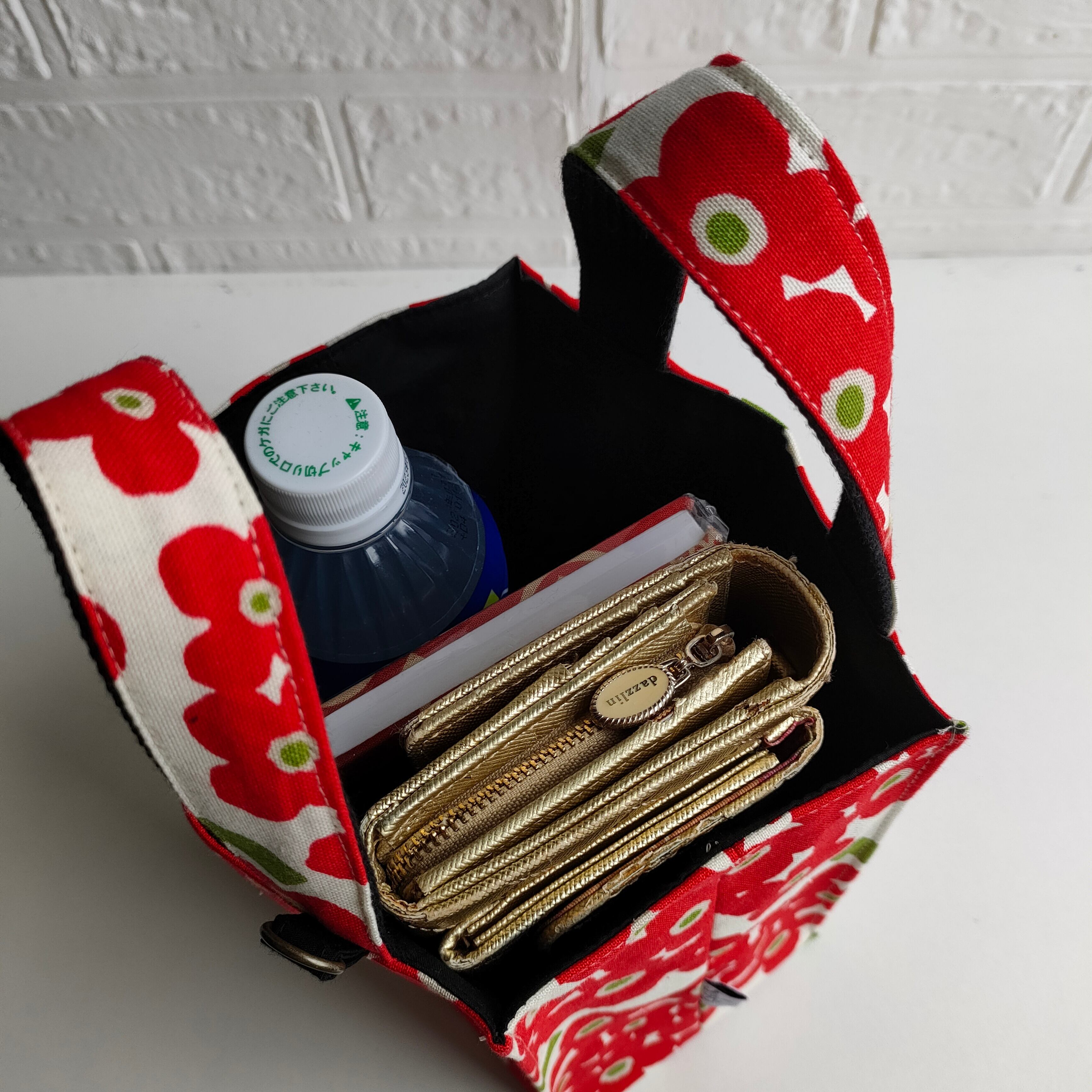 財布やスマホ、ペットボトル、ハンカチなど、必要最低限のアイテムを収納できます。