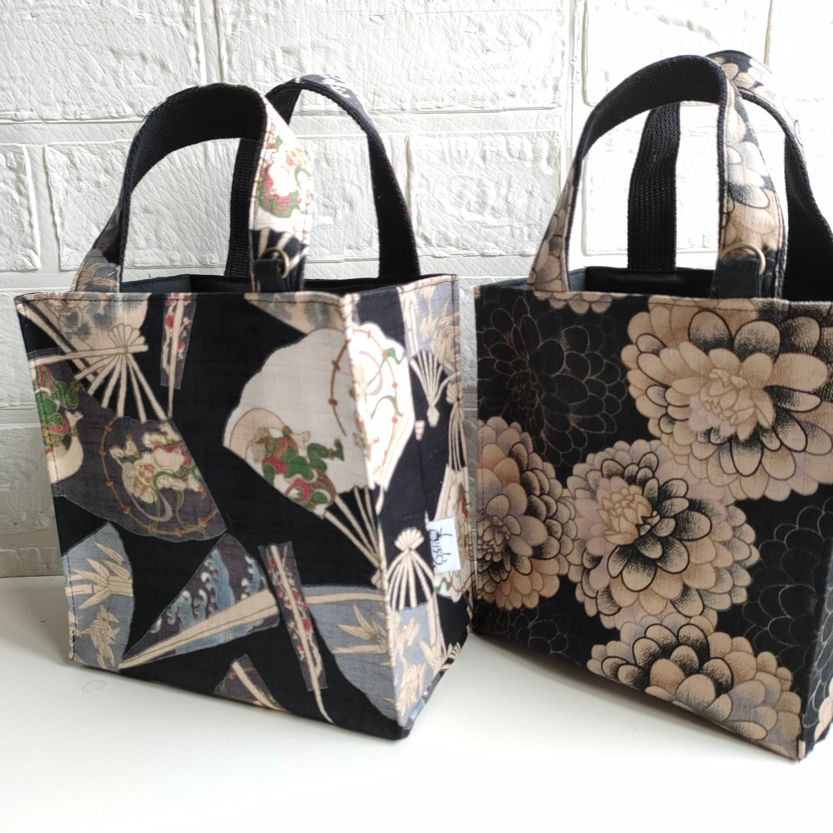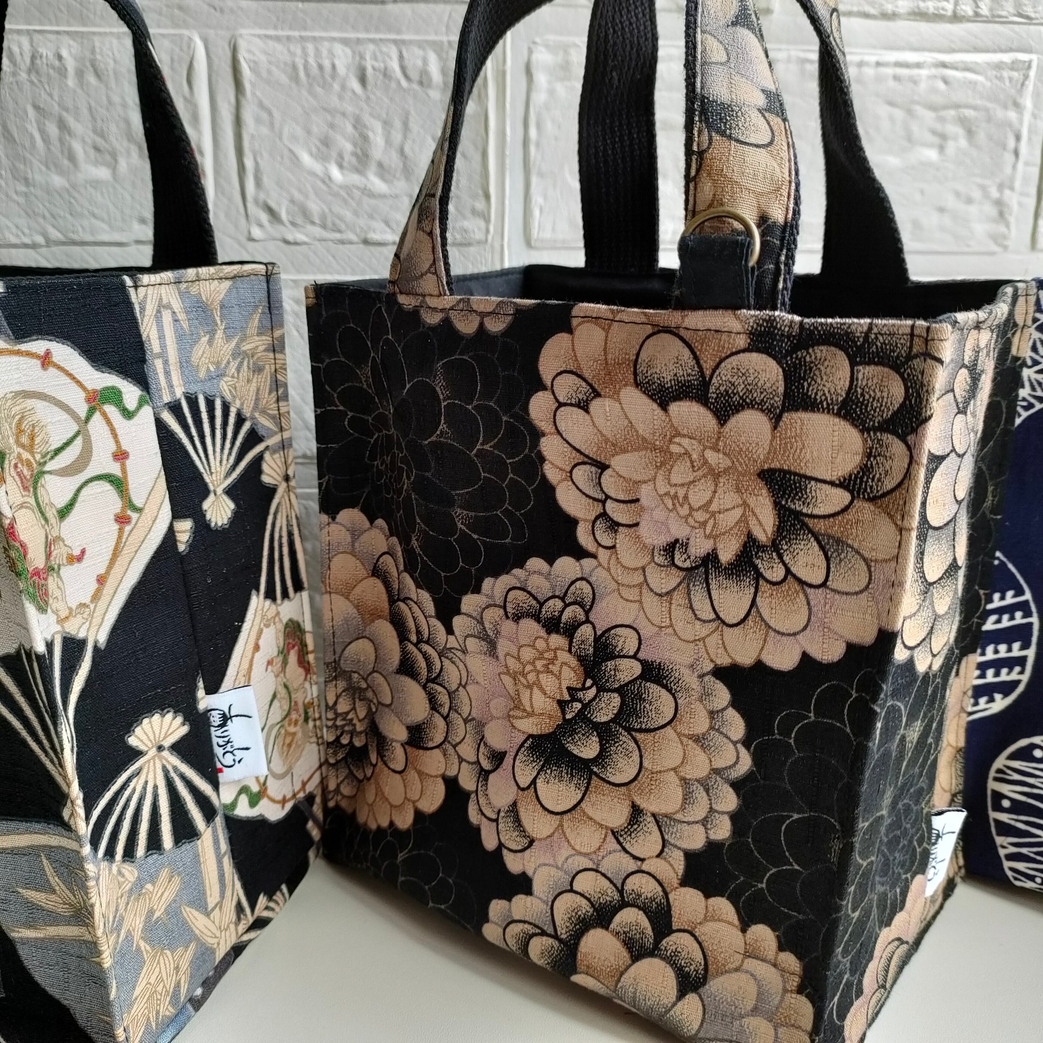 スクエアミニトートバッグ 風神雷神 ダリア ボタン リーフ ボタニカル 花柄バック ミニバック