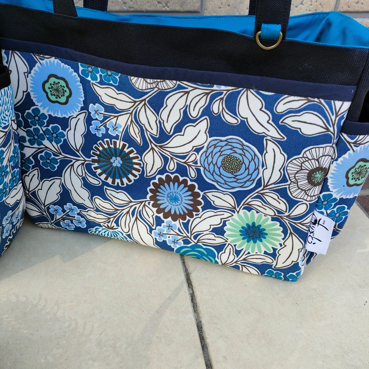 サイドポケット付きトートバッグ大 ボタニカルトートバッグ 北欧柄トートバッグ 秋のコーデ 大人バック ボタニカル