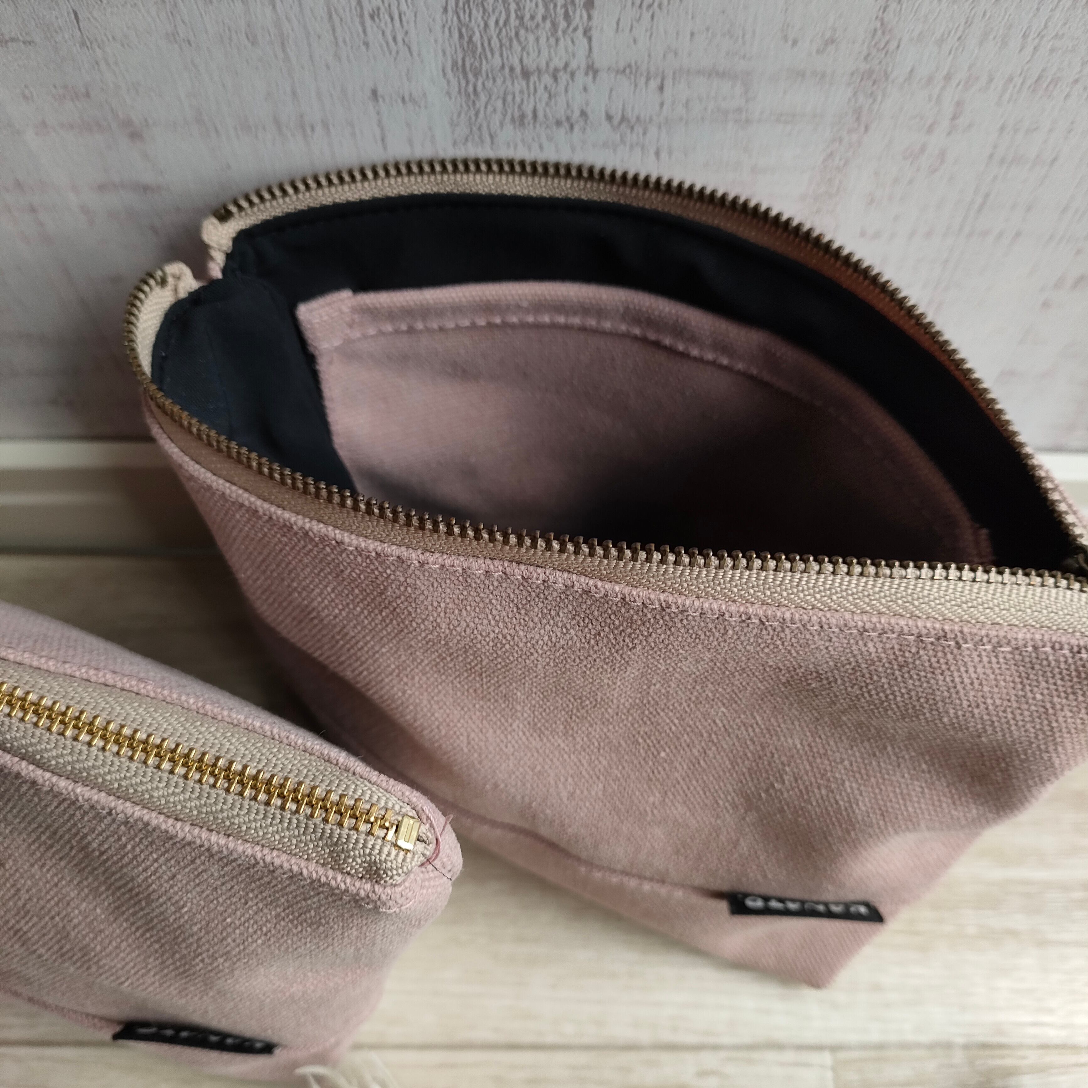 化粧ポーチや通帳、小物の収納に最適なサイズ感で、内側にポケットもついているので使い勝手も抜群です。