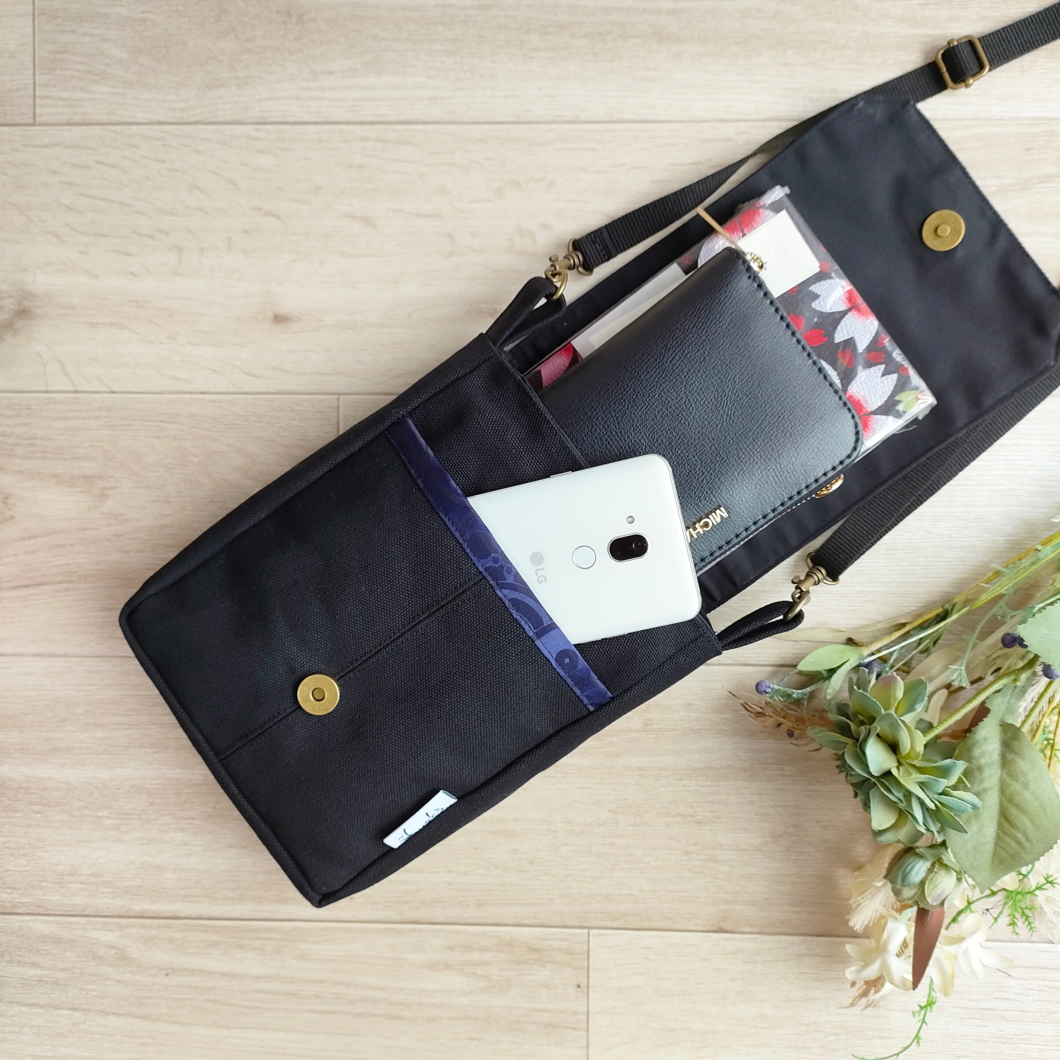 蓋付きサコッシュ 旅行やお出かけに最適なアイテムです。大きさは長財布、鍵、ハンカチ、必要最低限の荷物を収納するのに十分なサイズ感です。観光地巡りや買い物の際にはもちろん、御朱印帳を入れてお参りに行くときにも便利です。