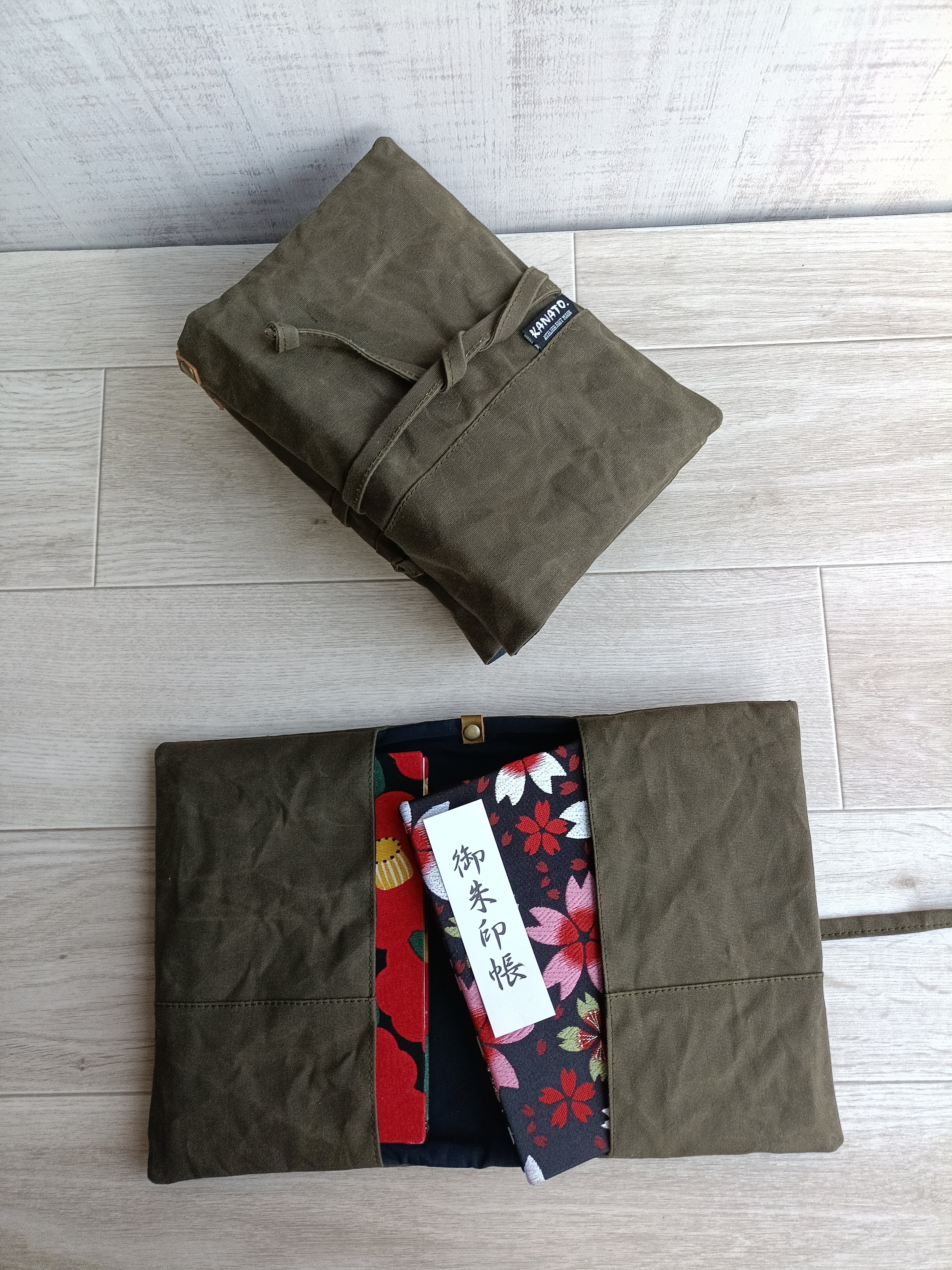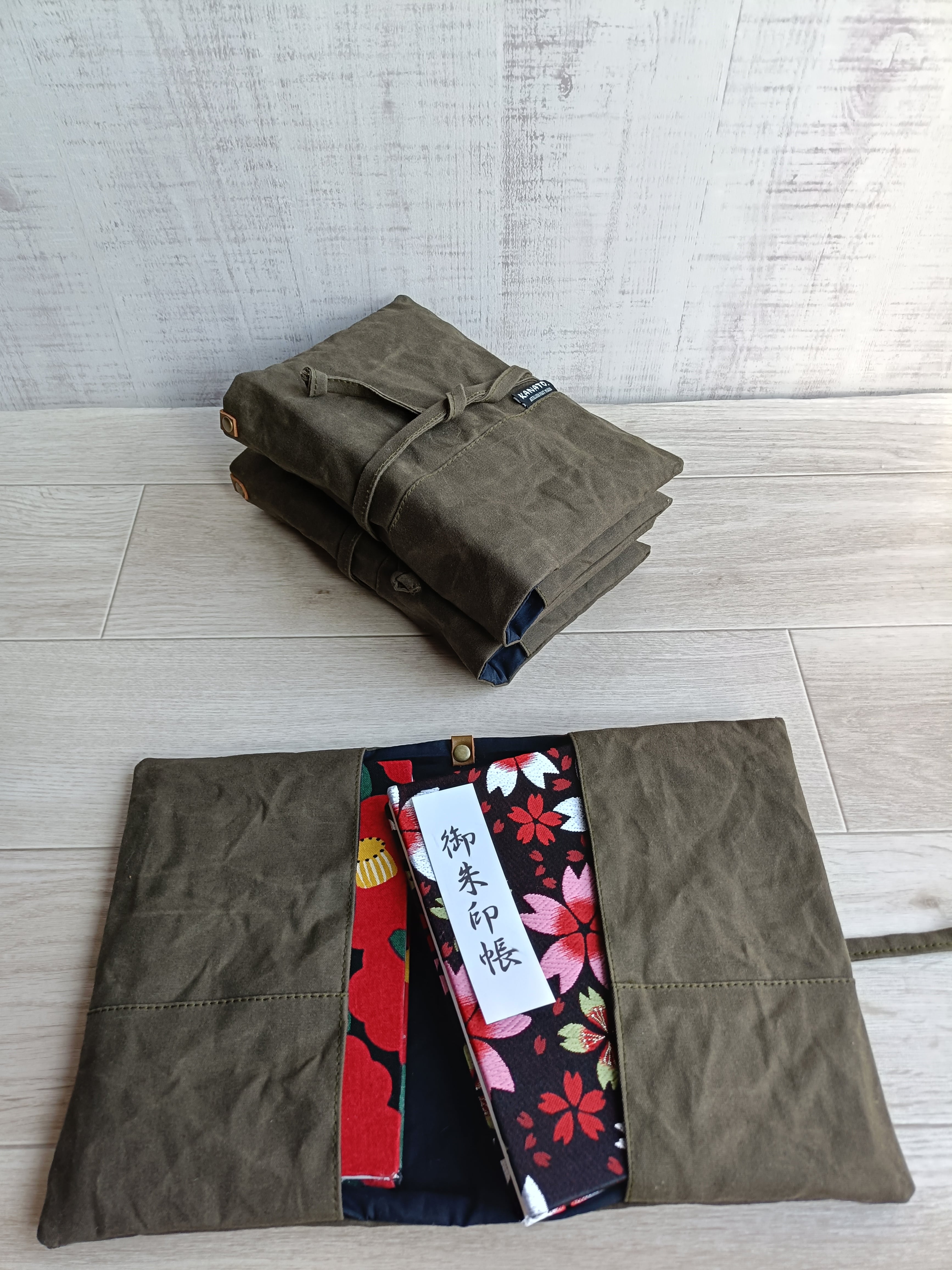 パラフィン加工帆布御朱印帳袋 御朱印帳袋 御朱印帳ケース 防水御朱印帳袋 マスタード&カーキ