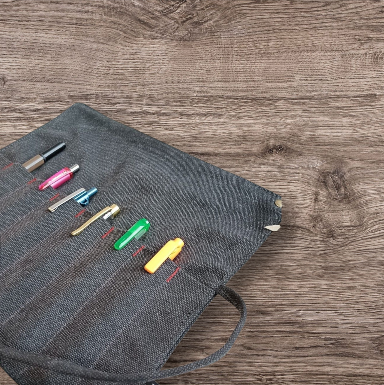 巻き型デザインが特徴の帆布ペンケース